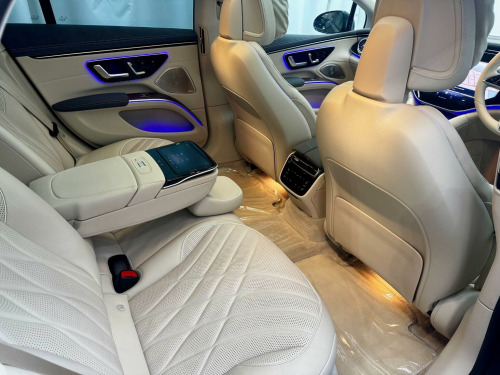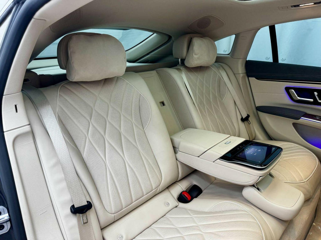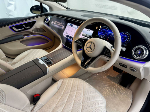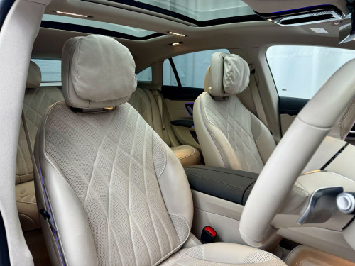 Erls Vehicles are delighted to present this exceptional 2023 (73) Mercedes-Benz EQS Exclusive Luxury, finished in Graphite Grey Metallic with a beautifully contrasting Nappa Leather Interior in Macchiato Beige / Space Grey. As Mercedes-Benzs flagship electric saloon, the EQS delivers outstanding comfort, cutting-edge technology and effortless refinement. Specified with the highly desirable Hyperscreen Pack (£7,995), featuring the breathtaking MBUX Hyperscreen that spans the full width of the dashboard, seamlessly integrating the driver display, central infotainment and passenger screen beneath a single glass panel. The Rear Luxury Lounge Pack (£3,995) transforms the rear cabin into an executive-class environment, offering reclining, heated and ventilated rear seats with extended leg support and enhanced controls. The interior ambience is serene and luxurious, with premium materials, ambient lighting and exceptional attention to detail throughout. Key features include multi-zone climate control, Burmester surround sound, electrically adjustable memory seats, wireless charging, augmented-reality navigation and a comprehensive suite of driver-assistance systems for relaxed, confident driving. On the road, the EQS offers near-silent performance, superb ride comfort and impressive long-distance capability (real-world range ~390 miles), supported by rapid-charging technology for effortless touring (able to add ~270 miles in ~30 mins). Comes complete with 2x Keys, 2x Cables & Full Mercedes Service History, a clean health check by Mercedes in January, and the balance of Mercedes warranties (December 2026 for the vehicle, and December 2031 for the HV Battery). The vehicle is available for viewing at our premises: the UKs first truly eco-friendly showroom, located in rural Northamptonshire. To ensure the highest level of service, viewings are by appointment only. All vehicles come with a three-month EV-specific warranty, with extensions available. Erls Vehicles specialise exclusively in electric cars, backed by first-hand EV expertise since 2015.