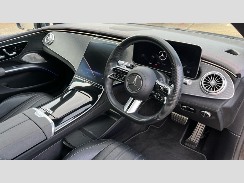 Mercedes-Benz Eqs EQS 450+ 245kW AMG Line Premium 108kWh 4dr Auto 108.4kWh battery, Active traffic sign assist, DYNAMIC SELECT with a choice of driving modes (ECO, Comfort, Sport and Individual), EQ navigation services - map (range display), display charging stations, programming of charging settings and pre entry climate control, Front wireless smartphone charging, Hard-disk navigation, Mercedes Benz emergency call system, Mercedes me connect, Mercedes me services, PAS, Pre-installation for private car sharing, Smartphone integration, 11 kW AC onboard charger, 110kW DC onboard charger, 200kW DC onboard charger, Airmatic air suspension, Charging cable for wall box and public charging station - Type 2(mode 3) 5m, Combined charging system CCS-2 connector, Rear wheel steering 10 degrees, Burmester surround sound system, DAB Digital radio, MBUX multimedia system, Acoustic privacy glass, AMG exterior styling, AMG front bumper in vehicle colour with A-wing in high gloss black and chrome trim, Black panel radiator grille, Body colour AMG rear apron with high-gloss black diffuser-look inserts, chrome double trim strip and flics at left/right air outlets in grained black, Daytime running lights, Digital HD LED headlight with ultra range high beam, Frameless windows, Heat insulating, noise insulating and infrared reflecting laminated glass, Heated windscreen washer system, High-gloss chrome front splitter with flics and fins at the left and right air inlets in high-gloss black with chrome trim, LED High level third brake light, LED rear tail lamps with 3D helix design, Panoramic sliding sunroof, Rear boot, Rear side wing doors, Side skirts in high-gloss black with chrome inserts, 3 seat bench in 2nd row, Ambient lighting 64 colours with direct light lines, AMG brushed stainless steel sports pedals with black rubber studs, AMG multifunction sports steering wheel in nappa leather, AMG sports seats, Front head restraints, Heated front seats, Heated rear seats, HEPA air filter, Lugano leather upholstery, Rear head restraints, Roof lining - Black fabric, Single front passenger seat, Split folding rear seats, Storage compartment under center console, THERMOTRONIC automatic climate control, Air quality pack - EQS, AMG interior design pack - EQS, Driving assistance plus pack - EQS, Easy pack tailgate, Interior light pack - EQS, Keyless go comfort package - EQS, Memory pack - EQS AMG Line/AMG Line Premium, Mirror package - EQS, Parking pack - EQS AMG Line Premium, USB package - EQS, ABS, ESP, Rear door child safety locks, Three point rear seat belts, Urban guard plus anti-theft protection hardware including Alarm and immobilizer, Anthracite wood main trim, Dashboard and belt lines in space grey ARTICO man-made leather with NEOTEX grain and red topstitching, 21" AMG multi spoke light alloy wheels aerodynamically optimised in black with high sheen finish, Summer tyres, Tirefit