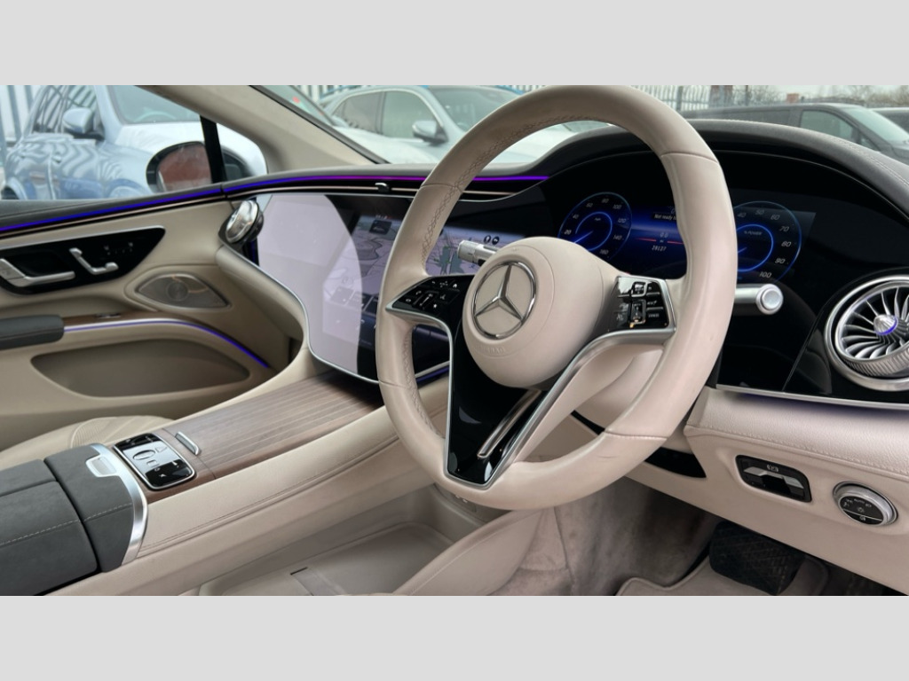 Mercedes-Benz Eqs EQS 450+ 245kW Exclusive Luxury 108kWh 4dr Auto 108.4kWh battery, Active traffic sign assist, DYNAMIC SELECT with a choice of driving modes (ECO, Comfort, Sport and Individual), EQ navigation services - map (range display), display charging stations, programming of charging settings and pre entry climate control, Front wireless smartphone charging, Hard-disk navigation, Mercedes Benz emergency call system, Mercedes me connect, Mercedes me services, Multifunction telephony, PAS, Pre-installation for private car sharing, Smartphone integration, 11 kW AC onboard charger, 200kW DC onboard charger, Airmatic air suspension, Charging cable for wall box and public charging station - Type 2(mode 3) 5m, Combined charging system CCS-2 connector, Rear wheel steering 10 degrees, Burmester surround sound system, DAB Digital radio, MBUX multimedia system, Acoustic privacy glass, AMG front bumper in vehicle colour with A-wing in high gloss black and chrome trim, Daytime running lights, Digital HD LED headlight with ultra range high beam, Electric art exterior with front apron with chrome trim in the upper and lower sections, Frameless windows, Heat insulating, noise insulating and infrared reflecting laminated glass, Heated windscreen, Heated windscreen washer system, High-gloss chrome front splitter with flics and fins at the left and right air inlets in high-gloss black with chrome trim, LED High level third brake light, LED rear tail lamps with 3D helix design, Panoramic sliding sunroof, Rear apron painted in vehicle colour with lower section in graphite grey metallic and chrome, Rear boot, Rear side wing doors, Side skirts painted in graphite grey with chrome inserts, Star panel radiator grille, 3 seat bench in 2nd row, Ambient lighting 64 colours with direct light lines, AMG brushed stainless steel sports pedals with black rubber studs, AMG multifunction sports steering wheel in nappa leather, Black velour floor mats, Electric art interior, Grey fabric roof lining, Heated front seats, Heated rear seats, Heated steering wheel, HEPA air filter, Multi contour seats with massage function, Nappa leather upholstery, Single front passenger seat, Split folding rear seats, Storage compartment under center console, THERMOTRONIC automatic climate control, Air quality pack - EQS, Driving assistance plus pack - EQS, Easy pack tailgate, Keyless go comfort package - EQS, Memory pack - EQS, Mirror package - EQS, Parking pack - EQS, USB package - EQS, ABS, ESP, Rear door child safety locks, Three point rear seat belts, Black vehicle key with rose gold ornamental surround, Urban guard plus anti-theft protection hardware including Alarm and immobilizer, Dashboard and belt lines in space grey ARTICO man-made leather with NEOTEX grain and red topstitching, Shipdeck wood main trim, 22" 5 twin spoke light alloy wheels aerodynamically optimised in black with high sheen finish, Summer tyres, Tirefit