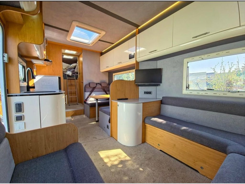 Vehicle Specifications Chassis: Mercedes Atego 822 (Uprated to 8.6T) Mileage: Only 52,000 miles (87,000 km) Service History: Full Service History; 2 new engine batteries; just serviced and heating system flushed. Driving Features: Factory rear air suspension (cab remote), Air Con, Electric Windows, Rear-view Camera, and Garmin Truck Sat Nav. Compliance: Sold with a New DVSA MOT on purchase. Living & Luxury (Sleeps 8 / Carries 7) Professionally redesigned interior featuring new suede roof linings, suede wall panels, and laminated finishes. Seating: 7 legal travel seats (3 in cab, 4 belted in rear). Sleeping: 4 double beds accommodating up to 8 people. Lounge/Dining: 8-person lounge and 4-person dinette with all-new upholstery and LED mood lighting. Entertainment: New Avtex Smart TV & Soundbar in lounge, Smart TV in rear bedroom, TV booster, and Roof Aerial. Climate: Alde Central Heating for year-round comfort. High-End Kitchen & Bathroom Kitchen: New Corian worktops, new sink/tap, 12v compressor fridge, air fryer, oven, grill, and microwave. Washroom: Full-size hot shower, toilet, and basin. Utilities: Under-chassis gas tank, water tanks, and dedicated jet wash tanks. Ultimate Off-Grid Power & Tech Electrical: Full Victron Off-Grid System featuring a 3kva Inverter, Lithium battery upgrade, large solar panel, and Color Touch control panel. Connectivity: New mobile internet system (Onboard Wi-Fi) and Vodafone S8 Tracker for security. Power: Gas on-board gener