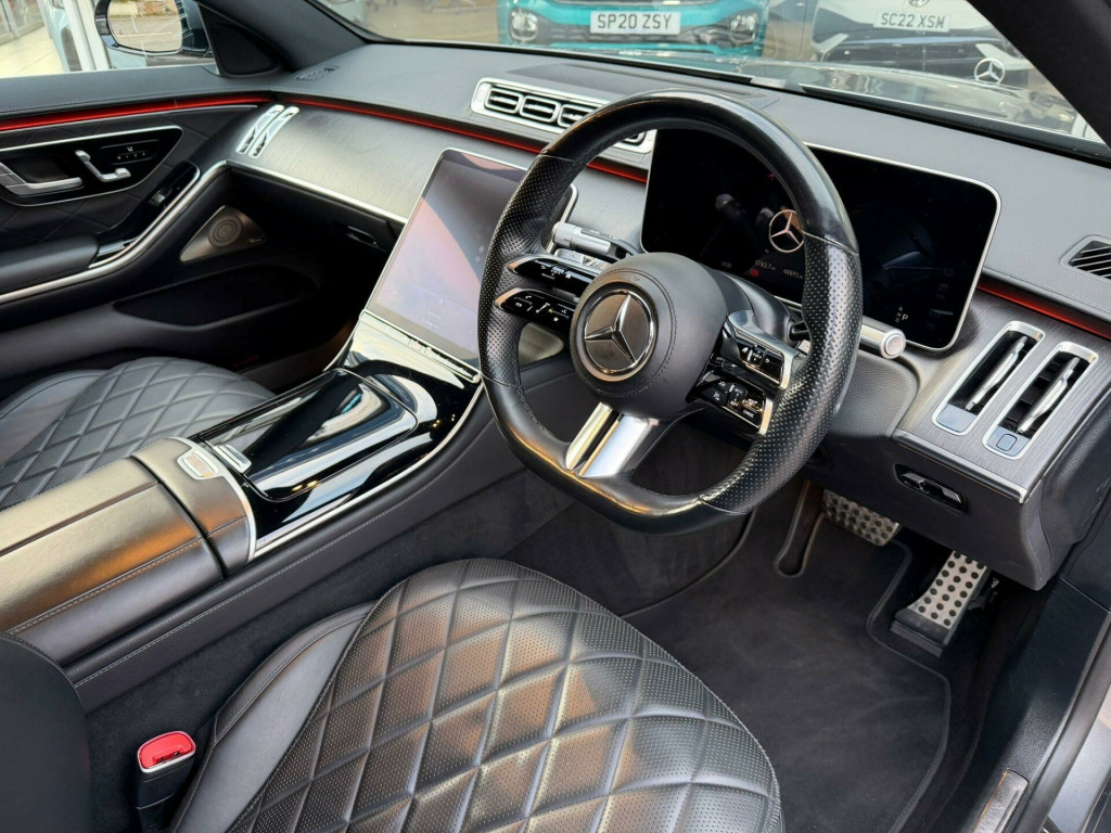 This 2021 Mercedes Benz S Class S350Ld AMG Line is a remarkable example of luxury and performance, boasting a powerful 2.9L diesel engine and meeting Euro 6 emission standards. It features the desirable AMG Line trim, enhancing its sporty appeal. Inside, you'll find convenience at your fingertips with wireless charging systems for both front and rear mobile devices, alongside KEYLESS-GO with seamless door handles for effortless entry and starting. Enjoy the open air with the sliding sunroof, and experience enhanced comfort with Seat Heating Plus for the outer rear seats.The S Class S350Ld AMG Line offers an impressive 0-62mph acceleration in just 6.4 seconds, demonstrating its dynamic capabilities. This performance, combined with its generous boot space, sets it apart from other vehicles in its class, offering both exhilarating driving and practical utility. The inclusion of Premium and Executive packages further elevates the experience, ensuring a sophisticated and comfortable journey for all occupants.. 12V Socket in Boot, 12V Socket in Rear of Centre Console - Plus in the Front Passenger Footwell, 2 USB-C Ports at the Front, 2 USB-C Ports in the Rear, 20in Alloy Wheels - AMG Multispoke - Painted in Himalaya Grey with High Sheen Finish, 3D Driver Display, 4-Way Lumbar Support for Driver and Front Passenger, ABS - Anti-Lock Braking System with BAS - Brake Assist, AIRMATIC Air Suspension, AMG Bodystyling - AMG Rear Apron with Diffuser Look and Trim Element in Chrome, AMG Floor Mats, AMG Front Apron in an A-Wing Design with Large Air Intakes and Fins in Chrome - Front Splitter in Chrome, AMG Pedals in Brushed Stainless Steel with Rubber Studs, ATTENTION Assist, Accident Recovery and Breakdown Management, Active Ambient Lighting, Adaptive Brake Lights, Airbag - Centre Airbag, Airbags - Driver and Front Passenger, Airbags - Front Side, Airbags - Windowbags, Ambient Lighting with Projection of Brand Logo, Auto Dimming Rear View Mirror, Automatic Child Seat Recognition Sensor, Autonomous Emergency Braking, Brake Pad Wear Indicator - Front Brakes, Burmester High-End 3D Surround Sound System, Centre Console in a Black Crystal-Look Finish, Chauffeur Package, Communications Module - LTE - for the use of Mercedes me Connect Services, Crosswind Assist, DAB Digital Radio, Dashcam, Designer Belt Buckles Front and Rear, Diesel Particulate Filter - DPF, Direct Steering, Double Sun Visor, Driving Assistance Package, Dynamic Select with a Choice of Driving Modes, Easy-Entry System, Electric Parking Brake, Electric Sunblind for Rear Window, Electric Sunblinds in Rear Doors - Left and Right, Electric Windows - Front, Electrically Adjustable Rear Seats including Memory Function, Electrically adjustable - Heated and Automatic Dimming Mirrors with Kerb Function, Electronic Stability Programme - ESP with Acceleration Skid Control - ASR, Extended MBUX Functions, Fingerprint Scanner, First Aid Kit, Front Passenger Seat - Electrically Adjustable from the Rear, Front Seats - Heated, Geofencing, Grey Painted Brake Calipers with Mercedes-Benz Lettering at the Front - at the Rear with Grey Logo Badge, Hands-Free Access, Head Restraints - Driver and Front Passenger - Easy Adjust Luxury, Heat-Insulating - Dark Tinted Glass, Illuminated Door Sills with Mercedes-Benz Lettering, Increased Anti-Theft Protection, Intelligent Parking Pilot, KEYLESS-GO Starting Function, KEYLESS-GO with Seamless Door Handles, Locking Wheel Bolts, MBUX Augmented Reality for Navigation, MBUX Navigation Premium, MBUX Rear Tablet, MULTIBEAM LED Headlights, Magic Vision Control, Maintenance Management, Mercedes-Benz Emergency Call System, Mirror Package, OLED Central Display, Panoramic Sliding Sunroof, Parked Vehicle Locator, Pedestrian Protection, Personalisation, Power Closing for Doors and Remote Boot-Lid, Pre-Installation for Navigation Services, Pre-Safe System including Pre-Safe Sound, Radiator Grille with Chrome Surround and Three Horizontal Cross Struts in Chrome with Inserts in High Gloss Black, Rear Belt Status Indication in the Instrument Display, Rear Centre Armrest with Double Cup Holder and Trim Element, Rear Seats - Climatised, Remote Boot Closing, Remote Door Locking, Remote Parking Package, Remote Parking Package with 360 Camera, Remote Retrieval of Vehicle Status, Remote Vehicle Diagnostics, Remote Vehicle Finder, Roof Lining - Fabric, Seat Heating Plus for Outer Rear Seats, Send2Car Function, Shoulderline Trim Strips - Chrome-Look Finish, Side Sill Panels with Chrome Insert, Sliding Sunroof, Software Update, Sound Personalisation, Speed Fencing, Steering Column Gear Selector, Steering Wheel - Gear Shift Paddles, Steering Wheel - Sports Multifunction in Nappa Leather, Summer Tyres with Noise Reducing Absorber, THERMOTRONIC - 4-Zone Automatic Climate Control, TIREFIT, Telediagnostics, Through-Loading Feature, Trim - Anthracite Open-Pore Poplar Wood, Two Bag Hooks, Tyre Pressure Loss Warning System, URBAN GUARD Vehicle Protection Plus, USB Package Plus, Umbrella Holder, V. Full service history