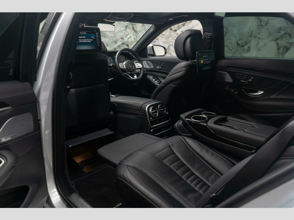 ectric panoramic glass sunroof, privacy glass - dark glass from b-pillar backwards, rear luxury lounge package, panoramic roof with magic sky control - switchable transparency, nappa leather - black, exclusive nappa leather - black, warmth comfort package, winter package, 12 v socket - on centre console - front and rear and in boot, 19in alloy wheels - amg 5 twin spoke design, abs - anti-lock braking system with bas - brake assist, airmatic air suspension with level adjustment and adaptive damping system, amg bodystyling - front and rear apron - side skirts, amg floor mats with amg lettering, amg sports pedals in brushed stainless steel with rubber studs, attention assist, active bonnet - pedestrian safety measure, active parking assist including parktronic and reversing camera, adaptive brake lights, airbags - driver and front passenger, airbags - front sidebags, airbags - windowbags, alarm system with immobiliser and interior protection - mbss3, ambient lighting - choice of 64 colour settings, analogue clock with mercedes-benz star, automatic child seat recognition sensor, automatically dimming rear view mirror and drivers door mirror, brake calipers with mercedes-benz lettering, brake pad wear indicator - front brakes, comand online system with media interface and touchpad, central controller dial to operate audio and telephone functions - when connected, centre armrests - front and rear with storage, collision prevention assist plus, crosswind assist, cup holders - front x2 and rear x2, dab digital radio tuner, dashboard upper section in artico leather, digital operating instructions, direct steering, door mirrors - electrically adjustable-folding-heated, dual-bonded 12.3in widescreen cockpit consisting of an instrument display and media display, esp - electronic stability programme with asr - acceleration skid control, esp curve dynamic assist, electric parking brake, electric windows - front and rear with pre-safe closing function, executive package, exhaust system - with visible two-pipe exhaust system in chrome, first aid kit, front passenger seat with pre-safe positioning function, front seat memory package, front seats - full electric adjustment, glove compartment - lockable - air-conditioned and illuminated, head restraints - rear x3 - electrically lowering, headlamp assist - automatic headlamp activation, heated front seats, illuminated door sill panels - front with mercedes-benz lettering, illuminated vanity mirrors - front and rear, keyless-go starting function, keyless go comfort package, led tail lights, load-securing rings in boot, locking wheel bolts, multibeam led with ultra range highbeam, magic vision control - adaptive windscreen wiper system - heated, map pockets on front seat backrests, mercedes connect me, mercedes me connect concierge service, near field communication, outside temperature gauge, pre-safe anticipatory occupant protection system, parcel nets in boot and front passenger footwell, pre-safe impulse, premium plus package, rain sensing wipers - two stage, reading lights - front and rear, rear seat belts status indicator, remote boot release, remote central locking, seat belt pre-tensioners - belt force limiters and automatic self height adjustment - front and outer rear seats, seat belts - rear three-point - 3, seats - heated rear, service indicator assyst, smartphone integration comprising apple carplay, speakers with frontbass, steering column - electrically adjustable with easy-entry function, steering column gear selector - direct select steering wheel gearshift paddles - speedtronic cruise control, steering wheel - 3-spoke multifunction sports steering wheel in nappa leather black with flattened bottom section perforated grip area with touch control buttons, stowage - glasses stowage compartment, stowage compartment in rear seat armrest, tirefit tyre-sealant kit, thermotronic automatic climate control in front - two zone - three climate modes - focused - medium and diffuse, tinted glass - green, traffic sign assist, trim - black poplar wood, trip computer, tyre pressure monitoring system, usb ports in the rear x2, wireless charging system - front for mobile devices, i-size and isofix child seat fixing points in rear - two outer seats