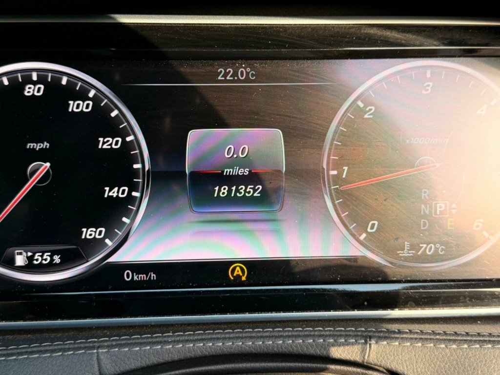 This 2014 Mercedes Benz S Class S350 V6 SE Line offers a refined driving experience. Powered by a 3.0L Euro 6 diesel engine, this SE Line model combines efficiency with performance, reaching 0-62mph in just 6.8 seconds. For your convenience and safety, it includes a reversing camera with parking assistance, front parking sensors, and LED headlights. Inside, you will appreciate the comfort of heated front seats and the ease of a Bluetooth interface for hands-free telephone calls.The generous boot space ensures you have ample room for luggage or shopping. The impressive acceleration of this S Class demonstrates its capability, setting it apart from many other vehicles in its class. This Mercedes Benz S Class S350 V6 SE Line is a well equipped and capable saloon.. 10GB Music Register and MP3 Compatibility, 12V Socket in Front Centre Console, 12V Socket in Luggage Compartment, 12V Socket in Rear Passenger Compartment, 18in Alloy Wheels - 5 Twin Spoke Design, ABS - Anti-Lock Braking System, AIRMATIC Air Suspension with Level Adjustment and Adaptive Damping System, ASR - Acceleration Skid Control, ATTENTION Assist, Active Bonnet - Pedestrian Safety which Detects an Impact and Raises Bonnet, Active Light System, Active Park Assist with Parktronic, Adaptive Brake Lamps, Air-Conditioned and Lockable Glove Compartment, Airbag - Front Passenger, Airbags - Driver, Airbags - Front and Rear Sidebags, Airbags - Window, Alarm System with Immobiliser and Interior Protection, Analogue Clock, Automatic Child Seat Recognition Sensor, Automatically Dimming Rear View Mirror and Drivers Door Mirror, BAS - Brake Assist, Bluetooth Interface for Hands-Free Telephone, Brake Pad Wear Indicator, CD-Radio, COMAND Online System with Media Interface, Central Controller Dial to Operate Audio and Telephone Functions, Centre Armrest - Front with Storage, Centre Armrest - Rear with Storage, Collision Prevention Assist, Crosswind Assist, DAB Digital Radio Tuner, Dashboard Upper Section in Artico Leather, Digital Operating Instructions, Direct Select Gear Shift with Steering Wheel Gear Shift paddles and Gear Selector on Steering Column, Direct Steering, Door Mirrors - Electrically Adjustable-Folding-Heated, Door Sill Panels - Stainless Steel Inlays with Mercedes-Benz Lettering, Doorhold System, ESP - Electronic Stability Programme, ESP Curve Dynamic Assist, Electric Parking Brake, Electric Windows - 4, Exhaust System - No Visible Tailpipe Tips, Extended Fog Light Function, First Aid Kit, Floor Mats - Velour, Front Passenger Seat with Pre-Safe Positioning Function, HDD Navigation with 3D Map Display and TMC, Head Restraints - Electrically Adjustable, Head Restraints - Rear - Electrically Lowering, Headlamp Assist - Automatic Headlamp Activation, Headlamps - LED Intelligent Light System, Headlights - Adaptive High Beam Assist, Headlights - Cornering Light Function, Headlights - LED, Heated Front Seats, ISOFIX Child Seat Fixing Points in Rear - Two Outer Seats, Illuminated Glove Compartment, Illuminated Vanity Mirrors in Rear, Instrument Cluster with 12.3in TFT Colour Display and ECO Display, Integrated WLAN Hotspot for Onboard Access of WLAN Enabled Devices, LED Tail Lights, Linguatronic Voice Control, Load Securing Rings in Boot, Locking Wheel Bolts, Luxury Automatic Climate Control - Two-Zone Control - Digital Display, Magic Vision Control - Adaptive Wiper System - Heated, Map Pockets on Front Seat Backrests, Media Interface, Media Interface - Cables Included for AUX-In-USB or iPod Connectivity, Mercedes-Benz Emergency Call System, Multi-Function Colour Display with Trip Computer, Outside Air Temperature Gauge, Parcel Nets in Boot and Front Passenger Footwell, Parking Package, Parking Sensor - Front, Parking Sensor - Rear, Pollen Filter, Pre-Safe Anticipatory Safety System, Pre-Safe Impulse, Rain Sensing Wipers - Two Stage, Reading Lights - Front and Rear, Rear Seat Belts Status Indicator, Rear Sill Protector - Black, Remote Boot Release, Remote Central Locking, Reversing Camera, SD Card Slot, SPEEDTRONIC Cruise Control, Seat belt - pre-tensioners and force limters - front and second row outer seats, Seats - Front Electrical Height Adjustment, Seats - Front Electrically Adjustable, Seats - Front Four-way Electric Lumbar Support, Service Indicator ASSYST, Speakers with FrontBass, Speed Limit and Traffic Sign Assist, Steering Column - Electrically Adjustable with Easy-Entry Function, Steering Wheel - Multi-Function - 2-Spoke, Steering Wheel - Nappa Leather, Stowage - Glasses Stowage Compartment, Sun Visors with Illuminated Vanity Mirrors, Tinted Glass - Green, Tirefit Tyre Sealant Kit, Trim - Dark Brown Eucalyptus wood, Tyre Pressure Loss Warning System.