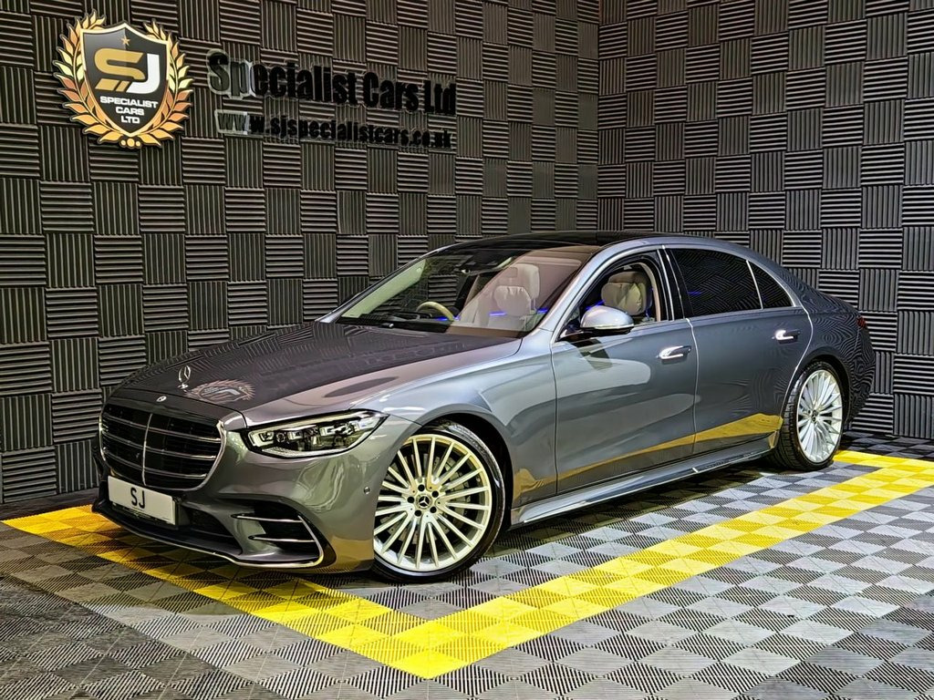 2021 / 71 Mercedes S500L Hybrid 4-Matic AMG Line Premium Plus. Finished in Selenite Grey Metallic, with Cream Quilted Leather. 25000 Miles Only, One Owner From New FMBSH . 12 Months Mercedes Warranty. Huge Spec Inc : 21" Multi spoke AMG Alloys, Head-Up-Display, Sliding Panoramic Sunroof, Electric Rear Heated Seats, Electric Rear Blinds, Burmeister High End Sound, 360 Surround Cameras, Adaptive Air Suspension, Ambient Lighting, Adaptive Cruise Control, Illuminated Door Sills, Air Balance Pack, Plus Much More !! Finance, and Part Exchange Available. 12V Socket in Boot, 12V Socket in Rear of Centre Console - P, 2 USB-C Ports at the Front, 2 USB-C Ports in the Rear, 21in Alloy Wheels - AMG Multispoke - Pai, 3D Driver Display, 4-Way Lumbar Support for Driver and Fron, ABS - Anti-Lock Braking System with BAS , AIRMATIC Air Suspension, AMG Bodystyling - AMG Rear Apron with Di, AMG Floor Mats, AMG Front Apron in an A-Wing Design with, AMG Pedals in Brushed Stainless Steel wi, ATTENTION Assist, Accident Recovery and Breakdown Manageme, Active Ambient Lighting, Active Multicontour Seat Package, Adaptive Brake Lights, Air Balance Package, Airbag - Centre Airbag - Driver and Fron, Ambient Lighting with Projection of Bran, Auto Dimming Rear View M