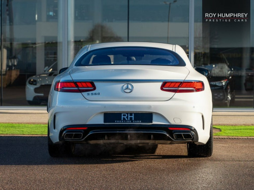 2018 Mercedes Benz S-Class S560 V8 BiTurbo AMG Line Premium finished in Diamond White Bright with Black, Nappa Leather interior. Further specification includes but is not limited to, 20in Alloy Wheels - AMG 10 Spoke Design | Electric Sunblind for Rear Window | AIRMATIC Air Suspension with Level Adjustment and Adaptive Damping System | AIRSCARF - Neck Level Heating System | Ambient Lighting - Choice of 64 Colour Settings | Burmester Surround Sound System | COMAND Online System with Media Interface | Front Seat Memory Package | Front Seats - Comfort Ventilated | Headlamps - LED Intelligent Light System | Heat-Insulating - Noise-Insulating and Infrared-Reflecting Laminated Glass | Keyless Go Comfort Package | MAGIC VISION CONTROL - Adaptive Windscreen Wiper System | OLED Taillights with 66 Individual Organic LED Lights | Panoramic Roof - Fixed | Parking Package | Seats - Heated Rear | Smartphone Integration via Android Auto or Apple CarPlay | Steering Column - Electrically Adjustable with Easy-Entry Function | THERMOTRONIC Luxury Automatic Climate Control - Two-Zone | Wireless Charging System - Front for Mobile Devices | i-Size Child Seat Attachment for Outer Rear Seats Nappa Leather - Black, 20in Alloy Wheels - AMG 10 Spoke Design, Diamond White Bright, Electric Sunblind for Rear Window, 19in Alloy Wheels - AMG 5 Twin Spoke Des, ABS - Anti-Lock Braking System with BAS , AIRMATIC Air Suspension with Level Adjus, AIRSCARF - Neck Level Heating System, AMG Floor Mats with AMG Lettering, ATTENTION Assist, Active Bonnet - Pedestrian Safety Measur, Adaptive Brake Lights, Adaptive Brake System, Airbags - Driver and Front Passenger, Airbags - Front and Rear Sidebags, Airbags - Windowbags, Alarm System with Immobiliser and Interi, Ambient Lighting - Choice of 64 Colour S, Automatic Child Seat Recognition Sensor, Belt Feeder, Brake Calipers - Painted Grey with Merce,