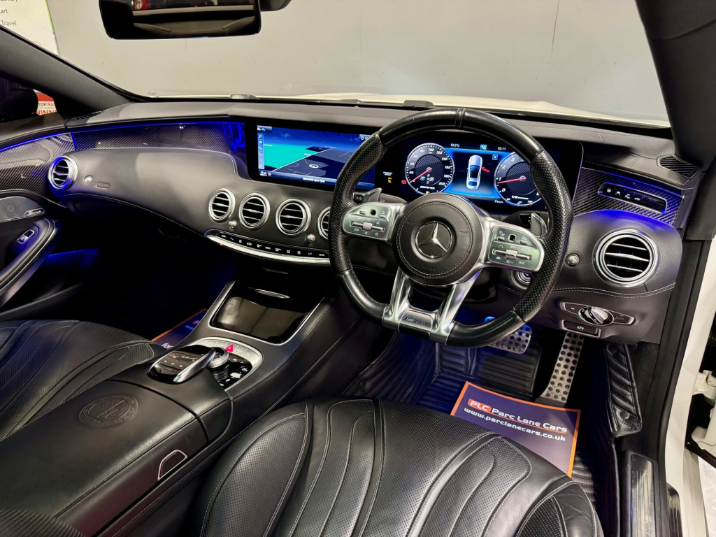 WOW!!PARC LANE CARS OF GOSFORTH PRESENT THIS BEAUTIFUL AND ULTRA RARE MERCEDES BENZ S 63 AUTO AMG EXCLUSIVE PACKAGE COUPE. FINISHED IN DESIGNO DIAMOND WHITE WITH STUNNING EXCLUSIVE BLACK NAPPA LEATHER INTERIOR TRIM!THIS S CLASS HAS COVERED ONLY 56000 MILES AND COMES WITH A COMPREHENSIVE MERCEDES BENZ SERVICE HISTORY, SERVICED AT THE FOLLOWING INTERVALS;3899 MILES - 21/05/2019 - MERCERDES BENZ COWLEY10778 MILES - 22/10/2020 - MERCEDES BENZ COWLEY16102 MILES - 12/11/2021 - MERCEDES BENZ WOLVERHAMPTON26042 MILES - 08/12/2022 - MERCEDES BENZ NEWCASTLE41814 MILES - 01/02/2024 - MERCEDES BENZ NEWCASTLE51127 MILES - 19/03/2025 - MERCEDES BENZ NEWCASTLESUPPLIED WITH 2 REMOTE KEYS AND FITTED WITH FOLLOWING FACTORY EXTRAS;20-Inch AMG 5-Twin-Spoke Light Alloy WheelsDesigno Diamond White Pearl PaintAMG Exclusive Package (Including: AMG Badges in Black)Front and Rear Seat Backrests + AMG Stainless Ste PanelsArmrests Map Pockets and Upper Dashboard in Nappa Leather with Contrast StitchingColour-contrasting Fluting on BeltlineDINAMICA Microfibre Roof Lining and Sun VisorsParcel Shelf in ARTICO Man-made LeatherSeats in Designo Nappa Leather Featuring Diamond Design with Contrast Stitching, Fluting and Patterned PerforationsFactory Specification:360 Degree CameraActive Lane Keeping AssistAmbient LightingAMG Sports ExhaustAMG Sports SuspensionApple CarPlay + Android AutoBurmester High-end 3D Surround Sound SystemCOMAND OnlineHeated Front & Rear SeatsPanoramic RoofParktronicTraffic Sign AssistWireless Charging and Connection Via BluetoothTHIS CAR IS SIMPLY STUNNING AND IS NOT TO BE MISSED!!FINANCE IS AVAILABLE AND PART EXCHANGE IS WELCOMEREG NO. CA18 KCO in alloy wheels - amg 5-twin-spoke design, amg bodystyling, amg panamericana grille, amg sports exhaust system with chrome plated twin tailpipes - two-mode - selectable sound, brake calipers - painted grey with amg lettering, door mirrors - electrically adjustable-folding-heated, door mirrors - integrated led indicators, heat-insulating - noise-insulating and infrared-reflecting laminated glass, heated rear window with timer control, panoramic roof - fixed, power windows with one-touch control and obstruction sensor, tirefit tyre-sealant kit, v8 biturbo lettering on front wings, abs - anti-lock braking system with bas - brake assist, active bonnet - pedestrian safety measure, adaptive brake lights, adaptive brake system, airbags - driver and front passenger, airbags - front and rear sidebags, airbags - window, alarm system with immobiliser and interior protection, automatic child seat recognition sensor, belt feeder, crosswind assist, driving assistance package, esp - electronic stability programme with asr - acceleration skid control, esp curve dynamic assist, electric parking brake, keyless go comfort package, seat belts - rear three-point - 2, i-size child seat attachment for outer rear seats, airscarf - neck level heating system, amg door sill panels in brushed stainless steel with amg lettering - illuminated, amg dual-bonded widescreen cockpit consisting of an instrument display and media display including amg main menu and start-up screen, amg emblem embossed in front centre armrest, amg exclusive floor mats, amg sports pedals in brushed stainless steel with rubber studs, ambient lighting - choice of 64 colour settings, centre armrest - front with storage, closing aid for doors and boot lid, cup holder - front x2, doorhold system, front seat comfort package, front seat memory package, front seats - comfort ventilated, glove compartment - lockable - air-conditioned and illuminated, interior mirror and drivers exterior mirror - automatically dimming, luggage net in luggage compartment, magic vision control - adaptive windscreen wiper system, map pockets on front seat backrests, parcel nets in boot and front passenger footwell, reading lights - front and rear, rear armrest, rear head restraints, remote boot release and closing, roof lining - fabric, seat heating plus - driver and front passenger seat, seats - amg sports with amg v8-specific layout, seats - heated rear, steering column - electrically adjustable with easy-entry function, steering wheel - amg sports steering wheel in 3-spoke design in nappa leather with perforated grip area, stowage - full length centre console in rear, stowage - glasses stowage compartment, stowage compartment in centre console, sun visors with illuminated vanity mirrors, thermotronic luxury automatic climate control - two-zone, trim - black poplar wood, amg high-performance composite braking system, amg speed sensitive sports steering with variable steering ratio, amg sports suspension based on airmatic with adaptive damping system, attention assist, four transmission modes and race start function, parking package - active parking assist with parktronic and 360 degree camera, service indicator assyst, suspension settings switch, touchpad, traffic sign assist, trip computer, tyre pressure monitoring system, burmester surround sound system, comand online system with media interface, dab digital radio tuner, mercedes me connect - standard services, mercedes me connect concierge service, near field communication, smartphone integration via android auto or apple carplay, wireless charging system - front for mobile devices, headlamps - led intelligent light system, headlight assist - automatic headlight activation, oled taillights with 66 individual organic led lights