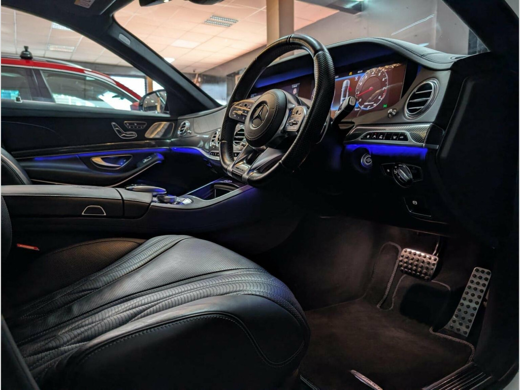 12 Months Mercedes AMG warranty, Full ppf including interior digital dashboard and exterior. Full exclusive nappa leather, And alcantra roof lining. Discover this exceptional 2019 Mercedes Benz S Class S63L V8 AMG, boasting remarkably low mileage for its year at just 20200 miles. This Euro 6 compliant model is powered by a potent 4.0L petrol engine, delivering exhilarating performance with a 0-62mph acceleration time of only 4.3 seconds. Experience refined comfort with the Electric Panoramic Glass Sunroof, offering an opening function for an airy cabin. The Driving Assistance Package enhances your journey with features like Blind Spot Assistance and Adaptive Cruise Control, while the Thermotronic Automatic Climate Control provides personalised comfort across three distinct modes. Enjoy the luxury of Heated Rear Seats and immerse yourself in superior audio quality with the Burmester Surround Sound System. This S Class variant stands out with its generous boot space, providing ample room for all your needs. The combination of its powerful V8 AMG engine and advanced features signifies a superior driving experience compared to other vehicles in its class. The meticulous attention to detail, from the climate control to the premium sound system, ensures every journey is a pleasure, making this a truly distinguished example of the Mercedes Benz S Class. ... A £90 admin fee applies to all transactions**WE ACCEPT MOST MAJOR BANK CARDS** LOW RATE FINANCE AVAILABLE…VIEWING STRICTLY BY APPOINTMENT ONLY...PLEASE CALL TO ENQUIRE AS THERE MAY BE A DELAY IN ANSWERING EMAIL ENQUIRIES