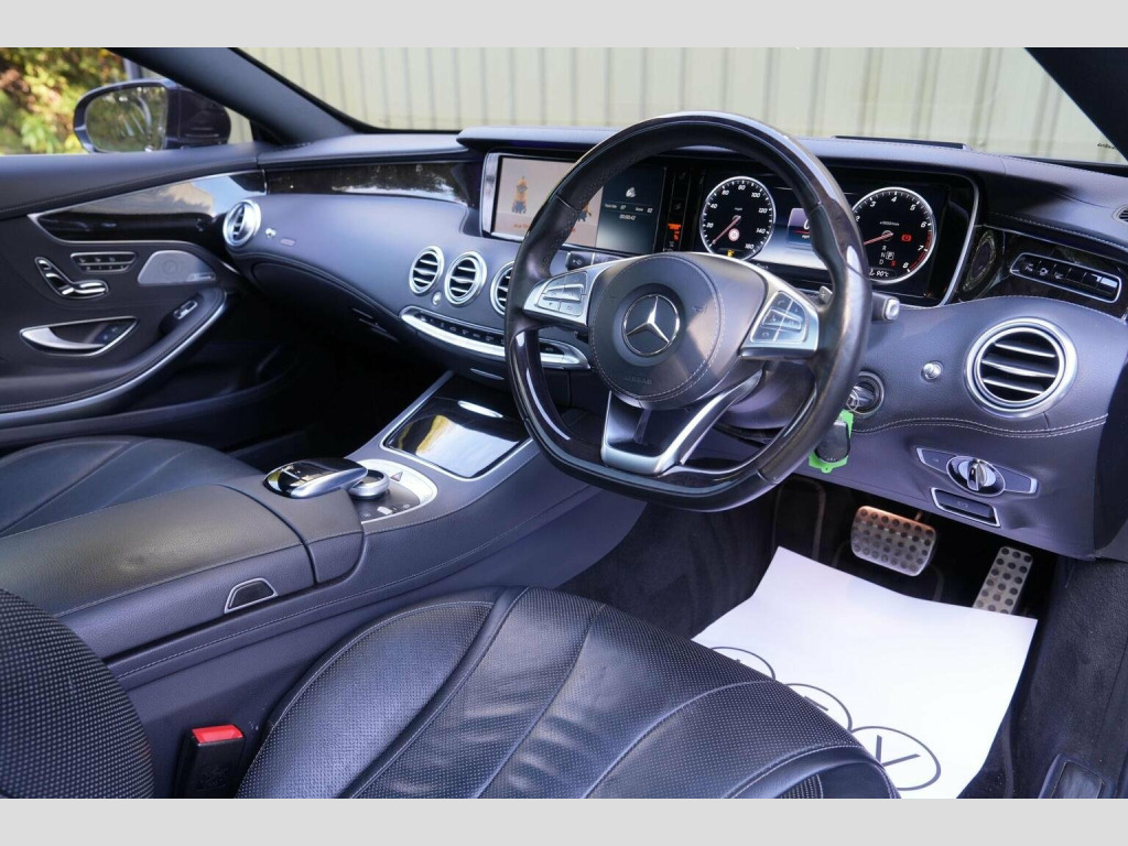 HEATED WOOD LEATHER STEERING WHEEL - 20 ALLOYS - We are delighted to present this exceptional 2017 67 registered Mercedes Benz S500 V8 AMG Line (Premium) Coupe, finished in Obsidian Black metallic with Black Nappa leather upholstery. Having covered just 47,000 miles from new, this exquisite example represents a rare opportunity to own one of the most comprehensively specified luxury coupes in its class. This S500 Coupe offers a wealth of high end features designed to elevate every journey. The panoramic glass roof floods the cabin with natural light, creating a refined and spacious atmosphere, while the interior showcases meticulous craftsmanship with a heated wood and leather multifunction steering wheel, Airscarf neck level heating system, and Memory Package for complete comfort and convenience. Occupants are further indulged with climate controlled front seats, dynamic seat function, and heated rear seating, ensuring optimal comfort in all conditions. The Head-Up Display (HUD) provides essential driving information directly within the drivers line of sight, enhancing safety and allowing full focus on the road ahead. Technological excellence continues with a Surround View Camera system, Traffic Sign Recognition and the renowned COMAND APS Navigation system complete with DVD player and DAB digital tuner for seamless connectivity and entertainment. Visually, the S500 Coupe commands attention with its 20 AMG multi spoke alloy wheels and AMG Sports Package, perfectly balancing sporting presence with timeless elegance. Inside, the Burmester Surround Sound System delivers an outstanding acoustic experience, complemented by ambient cabin illumination that enriches the sense of occasion. Originally costing in excess of £110,000, this magnificent S-Class Coupe represents an extraordinary opportunity to acquire a truly distinguished vehicle. ****VIEWING STRICTLY BY APPOINTMENT ONLY - FOR FURTHER INFORMATION REGARDING THIS VEHICLE AND ANY OTHER PREMIUM MARQUE IN STOCK, PLEASE CALL SALES DIRECT. VEHICLE FINANCE SPECIALISTS OFFERING COMPETITIVE PACKAGES****