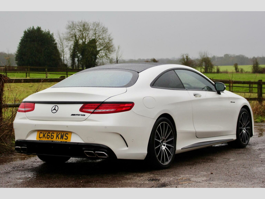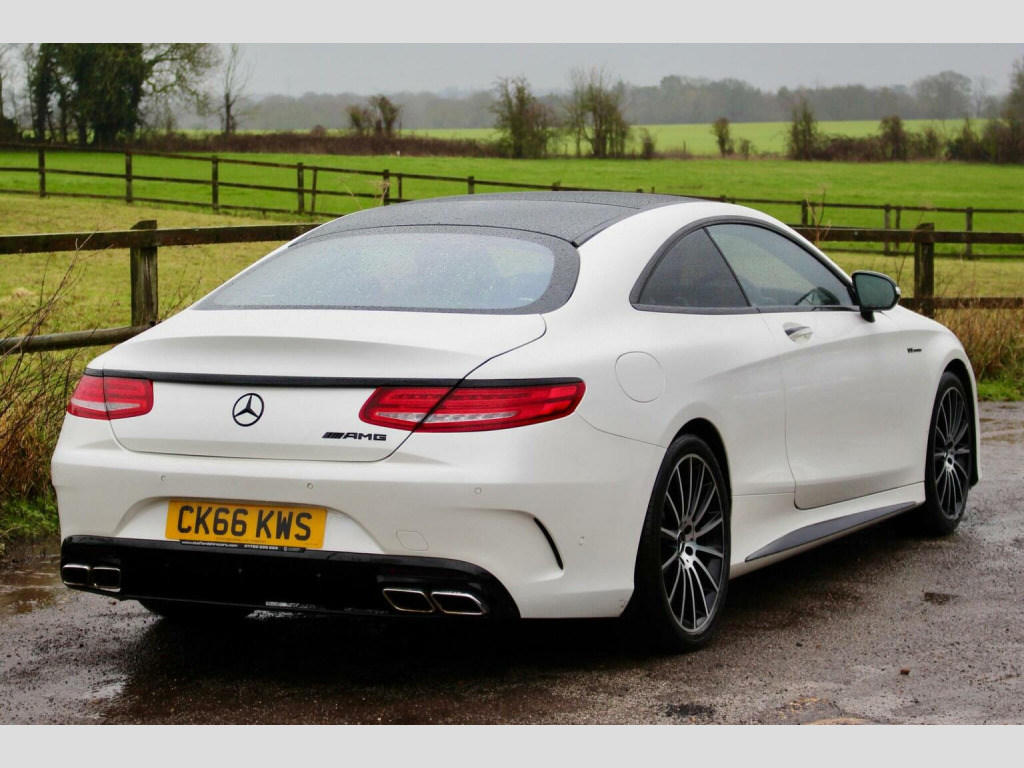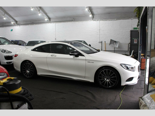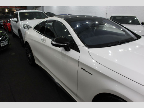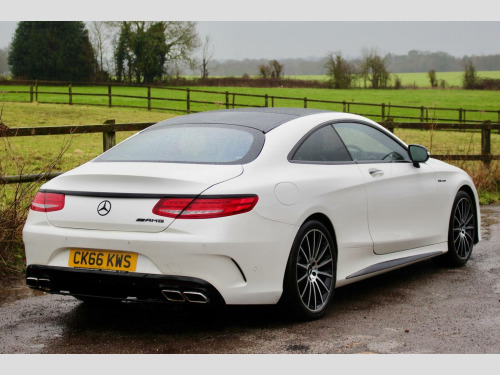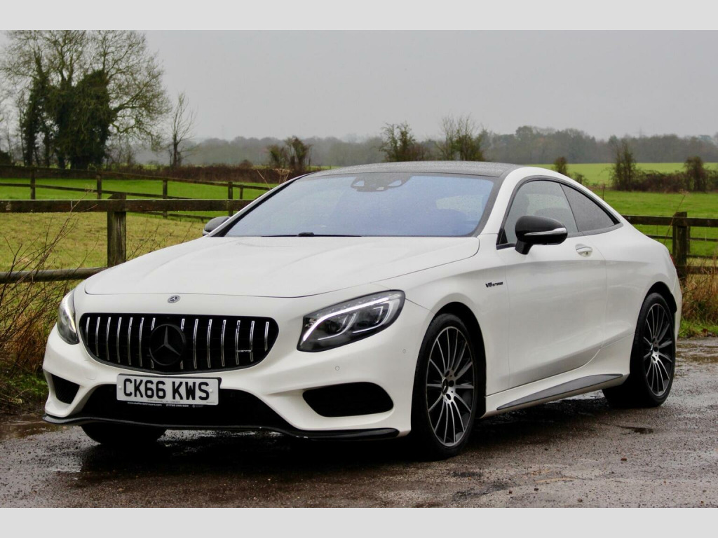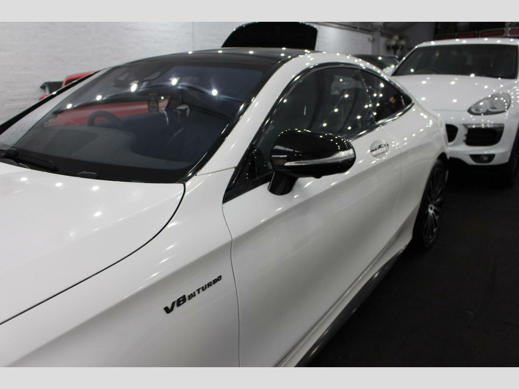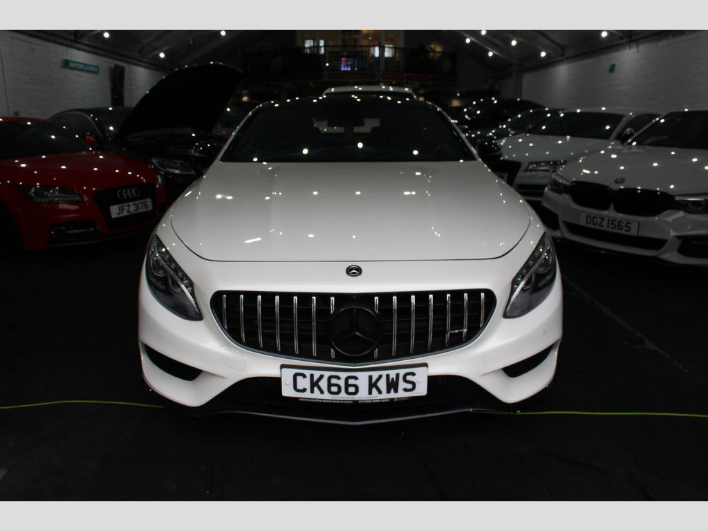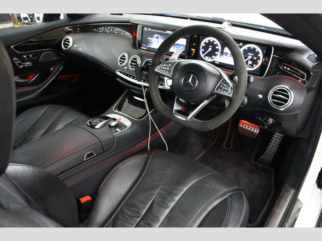 **Great finance packages available** Premium Pack, Pan Roof, 360 Cameras, Heated/Cooled/Massage Seats, 20s. Stunning 2016/16 S500 V8 AMG Line (Premium) G-Tronic Coupe with a great specification, this car has also had a sports exhaust upgrade making it sound fantastic. Full Service History, 5 Former Keepers, HPI Clear, MOT until 14/10/26, ULEZ Compliant. Designo Diamond White with Full Extended Black Nappa Leather Interior finished with Black Poplar Wood Trim. Factory Options: Comand Navigation, 20 AMG Alloy Wheels, Dynamic Heated/Cooled/Massage Seats, Burmester Surround Sound System, Panoramic Glass Sunroof, Seat Massage Function, Surround Cameras, Park Assist - Auto Parking, Air Balance Package, Illuminated Door Sills, Dynamic LED Headlights, Climate Control, Reverse Camera, Air Quality Package, Cruise Control, High Beam Assist, Multi Functional Steering Wheel, Extended Leather to Dash, Door Cards and Centre Consoles, Air Suspension with ABC, Privacy/Sun Protection Glass, Bluetooth, Auto Dimming Interior & Exterior Mirrors, Electric Memory Seats, Bluetooth Audio Streaming, iPod/USB Interface, F&R Parking Sensors, Auto Lights & Wipers.