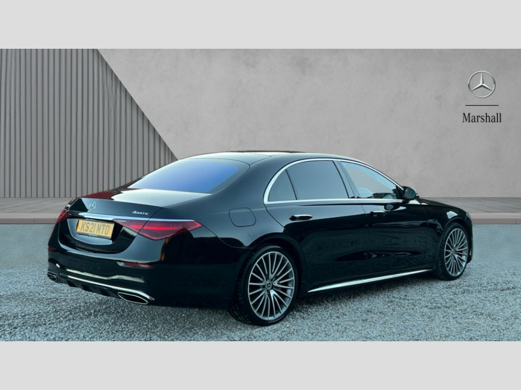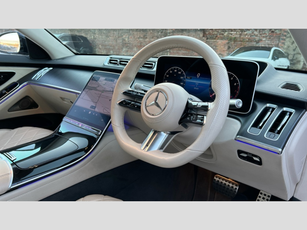 Mercedes-Benz S Class S500L 4Matic AMG Line Prem + Exec 4dr 9G-Tronic 12.3" 3D driver display, 12.8" OLED central display, Attention assist, Bluetooth connection, Crosswind Assist, Direct steering, DYNAMIC SELECT with a choice of driving modes, ECO start/stop function, Fingerprint scanner, Hands-free access for boot lid, Hard disc navigation, Intelligent parking pilot, MBUX augmented reality for navigation, MBUX augmented reality head-up display, MBUX rear tablet, Mercedes-Benz emergency call, Power closing aid for doors and boot lid, Rear belt status indication in the instrument display, Remote boot lid release and closing, Service indicator (ASSYST), Soft closing aid for doors and boot lid, Wireless charging system for mobile devices in the front, Wireless charging system for mobile devices in the rear, Wireless smartphone integration, 76 litre fuel tank, 9G TRONIC 9 speed automatic transmission, Airmatic air suspension, EQ Boost starter-alternator (48V mild hybrid technology), Petrol Particulate Filter, Burmester 3D surround sound system, DAB Digital radio, Front 2x USB type-C ports, Rear 2x USB type-C ports, Sound personalisation, Adaptive brake lights, AMG body styling with chrome elements, AMG front apron in A-wing design with large air intakes and fins in chrome plus front splitter in chrome, AMG rear apron with diffuser and trim element in chrome, Automatically dimming rear view mirror, Digital light - LED headlight, adaptive highbeam, cornering and active light, enhanced fog light, city, country road mode, weather and LED rear lamp, Electrically adjustable, heated and automatic dimming driver side exterior mirrors with kerb/parking function, Front and rear electric windows, Heat insulating, dark tinted noise insulating and infrared reflecting laminated glass, Heated windscreen, Illuminated door sill panels with Mercedes-Benz lettering, LED daytime running lights, Magic vision control, Panoramic sliding sunroof, Privacy glass, Radiator grille with chrome surround and three horizontal cross struts in chrome with inserts in high-gloss black, Shoulderline trim strip in chrome, Side sill panels with chrome insert, Visible tailpipe trim elements in chrome, 12V socket in boot, 12V socket in rear centre console plus in the front passenger footwell, 3 twin spoke flattened bottom multifunction sports steering wheel in nappa leather with silver chrome shift paddles, 4 way lumbar support for driver and front passenger, Active ambient lighting 64 colours with 10 colour schemes, projection of brand logo, AMG floor mats, AMG pedals in brushed stainless steel with rubber studs, Automatic child seat recognition sensor, Centre console in black crystal look finish, Climatised front seats, Climatised rear seats, Double sun visors with pivoting section to cover the side window, Driver and front passenger seat heating plus, EASY ADJUST luxury head restraints with additional cushion for driver and front passenger, foldable and removable on front passenger side, Easy entry system for driver, Electric rear window sunblinds, Electric sunblinds in rear doors, left and right, Electrically adjustable rear seats including memory function, Fabric roof liner, Front passenger side seat electrically adjustable from the rear, Nappa leather upholstery, Rear centre armrest with double cup holder and trim element, Rear head restraints, Seat heating plus for outer rear seats, Steering column gear selector, Steering wheel gearshift paddles, Steering wheel heating, Thermotronic automatic 4 zone climate control, Through loading system, Two bag hooks, Umbrella holder, Active multicontour seat pack - S Class, Air-balance pack - S Class, Chauffeur pack - S Class, Driving assistance package - S Class, Front energizing package - S Class, Memory pack - S Class, Parking package with 360 degree camera - S Class, USB pack plus - S Class, Warmth comfort package - S Class, Anti lock braking system (ABS) with brake assist, Brake pad wear indicator front brakes, Centre airbag, Driver/Front Passenger airbags, Electric parking brake, Electronic stability programme with acceleration skid control, First aid kit, Front and rear illuminated designer belt buckles, Front large compound brake discs 390x36mm internally ventilated and perforated, Front side airbags, Grey painted brake callipers with Mercedes-Benz lettering at the front, grey logo badge at the rear, i-Size and ISOFIX rear child restraint system, Pedestrian protection, Pre-safe system including pre-safe sound, Rear larger compound brake discs 360x26mm internally ventilated and perforated, Three 3 point rear seatbelts, Tyre pressure loss warning system, Window airbags, Dashcam, Increased anti-theft protection, KEYLESS-GO starting function with seamless door handles, Locking wheel nuts, Urban guard vehicle protection plus, Anthracite open-pore poplar wood, 21" AMG multispoke alloy wheels in himalaya grey with high-sheen finish, Noise reduced tyre with foam absorber, Summer tyres, Tyrefit tyre sealant kit