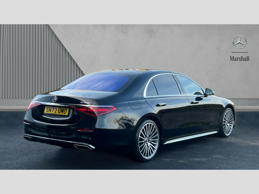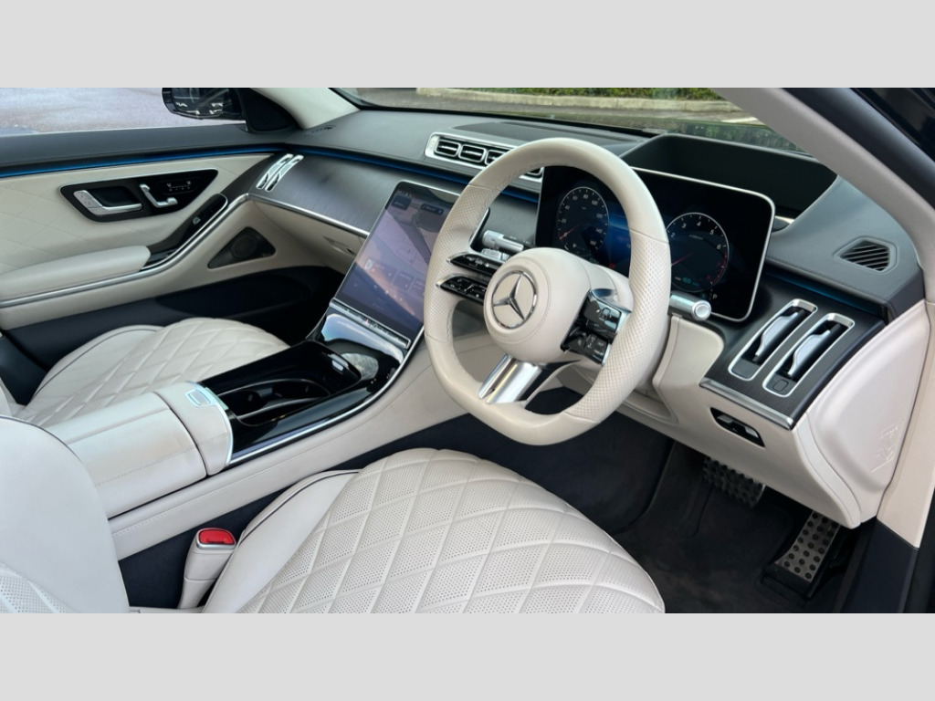 Mercedes-Benz S Class S500L 4Matic AMG Line Prem + Exec 4dr 9G-Tronic 12.3" 3D driver display, 12.8" OLED central display, Attention assist, Bluetooth connection, Crosswind Assist, Direct steering, DYNAMIC SELECT with a choice of driving modes, ECO start/stop function, Fingerprint scanner, Hands-free access for boot lid, Hard disc navigation, Intelligent parking pilot, MBUX augmented reality for navigation, MBUX augmented reality head-up display, MBUX interior assist - front and rear, MBUX rear tablet, Mercedes-Benz emergency call, Power closing aid for doors and boot lid, Pre-installation for private car sharing, Rear belt status indication in the instrument display, Remote boot lid release and closing, Service indicator (ASSYST), Wireless charging system for mobile devices in the front, Wireless charging system for mobile devices in the rear, Wireless smartphone integration, 76 litre fuel tank, 9G TRONIC 9 speed automatic transmission, Airmatic air suspension, EQ Boost starter-alternator (48V mild hybrid technology), Petrol Particulate Filter, Burmester 3D surround sound system, DAB Digital radio, Front 2x USB type-C ports, Rear 2x USB type-C ports, Sound personalisation, 3rd brake light, Adaptive brake lights, AMG body styling with chrome elements, AMG front apron in A-wing design with large air intakes and fins in chrome plus front splitter in chrome, AMG rear apron with diffuser and trim element in chrome, Automatically dimming rear view mirror, Digital light - LED headlight, adaptive highbeam, cornering and active light, enhanced fog light, city, country road mode, weather and LED rear lamp, Electrically adjustable, heated and automatic dimming driver side exterior mirrors with kerb/parking function, Exterior mirror - Ambient lighting with projection of brand logo, Front and rear electric windows, Heat insulating, dark tinted noise insulating and infrared reflecting laminated glass, Heated windscreen, Illuminated door sill panels with Mercedes-Benz lettering, LED daytime running lights, Magic vision control, Panoramic sliding sunroof, Privacy glass, Radiator grille with chrome surround and three horizontal cross struts in chrome with inserts in high-gloss black, Rear boot, Rear side wing doors, Shoulderline trim strip in chrome, Side sill panels with chrome insert, Visible tailpipe trim elements in chrome, 12V socket in boot, 12V socket in rear centre console plus in the front passenger footwell, 3 seat bench in 2nd row, 3 twin spoke flattened bottom multifunction sports steering wheel in nappa leather with silver chrome shift paddles, 4 way lumbar support for driver and front passenger, Adaptive rear compartment lighting, AMG floor mats, AMG pedals in brushed stainless steel with rubber studs, Automatic child seat recognition sensor, Belt feeders in the rear, Centre console in black crystal look finish, Climatised front seats, Climatised rear seats, Double sun visors with pivoting section to cover the side window, EASY ADJUST luxury head restraints with additional cushion for driver and front passenger, foldable and removable on front passenger side, Easy entry system for driver, Electric rear window sunblinds, Electric sunblinds in rear doors, left and right, Electrically adjustable rear seats including memory function, Energizing Air Control - Air quality and fine particle sensor, Fabric roof liner, Front centre armrest, Front passenger side seat electrically adjustable from the rear, Nappa leather upholstery, Rear centre armrest with double cup holder and trim element, Rear head restraints, Single front passenger seat, Steering column gear selector, Steering wheel heating, Thermotronic automatic 4 zone climate control, Through loading system, Two bag hooks, Chauffeur pack - S Class, Driving assistance package - S Class, Memory pack - S Class, Parking package with 360 degree camera - S Class, USB pack plus - S Class, Warmth comfort package - S Class, Anti lock braking system (ABS) with brake assist, Beltbags in rear, Brake pad wear indicator front brakes, Centre airbag, Child locks on rear doors, Driver/Front Passenger airbags, Electric parking brake, Electronic stability programme with acceleration skid control, First aid kit, Forward facing rear airbags, Front and rear illuminated designer belt buckles, Front large compound brake discs 390x36mm internally ventilated and perforated, Front side airbags, Grey painted brake callipers with Mercedes-Benz lettering at the front, grey logo badge at the rear, i-Size and ISOFIX rear child restraint system, Pedestrian protection, Pre-safe system including pre-safe sound, Rear larger compound brake discs 360x26mm internally ventilated and perforated, Rear side airbags, Three 3 point rear seatbelts, Tyre pressure loss warning system, Window airbags, Dashcam, Increased anti-theft protection, KEYLESS-GO starting function with seamless door handles, Locking wheel nuts, Urban guard vehicle protection plus, Anthracite open-pore poplar wood, 21" AMG multispoke alloy wheels in himalaya grey with high-sheen finish, Noise reduced tyre with foam absorber, Summer tyres, Tyrefit tyre sealant kit