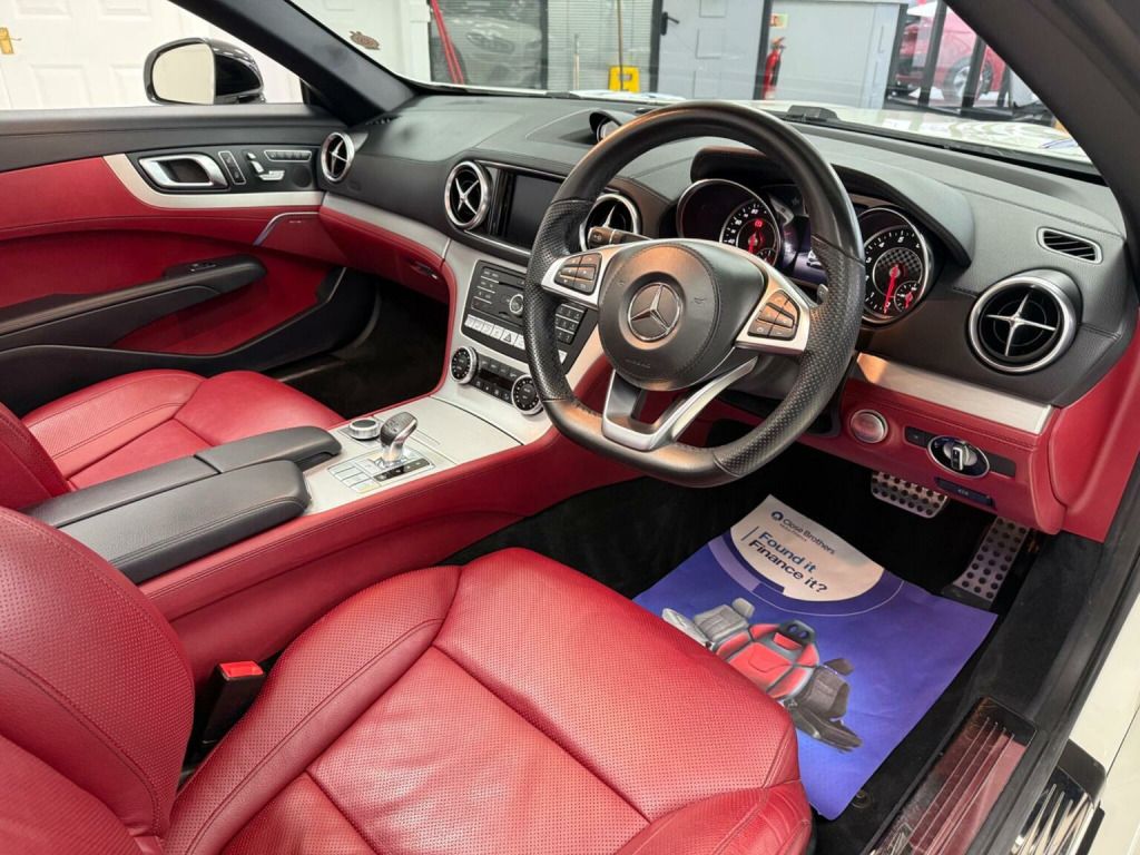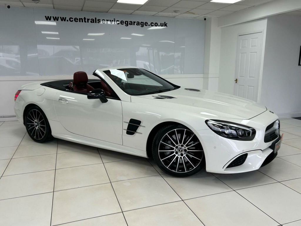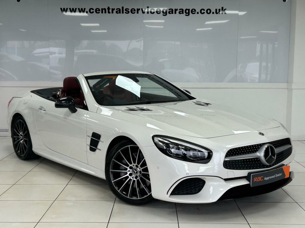 RESERVE & COLLECT - FREE 6 MONTH RAC WARRANTY - AIRSCARF - APPLE CARPLAY - ELECTRIC WIND DEFLECTOR - HEATED + COOLED LEATHER SEATS - MASSAGE SEATS - REVERSE CAMERA - FULL MERCEDES SERVICE HISTORY - PARKING SENSORS - LOW RATE FINANCE AVAILABLE - Central Service Garage Are Delighted To Offer For Sale This Stunning Mercedes SL400 Convertible Finished In Beautiful Pearl White Metallic Paintwork With Complementing Bengal Red Leather Heated + Cooled + Massage Seats. This AMG Line Benefits From 6 Previous Services Which Have All Been Completed At A Mercedes Main Agent, Showing No Expense Has Been Spared On Maintaining This Masterpiece! We Have Just Had It Independently MOTd, Serviced And Replaced The Rear Brake Pads Making It Ready To Drive Away. This AMG Has The Following Spec: Remote Central Locking, Unmarked Alloy Wheels, LED Daytime Running Lights, Front & Rear Parking Sensors, Apple CarPlay, Auto Headlights, Electric Memory Seats, DAB Radio/CD, Bluetooth, Sat Nav, Dual-Zone Climate Control, Reverse Camera, Multi Function Steering Wheel, Cruise Control, Paddle Shift, Electric Windows & Folding Mirrors, Electric Steering Column, AIRSCARF, Heated Seats, Electric Wind Deflector, Ambient Lighting. This Mercedes Looks Fantastic And It Needs To Be Seen And Driven To Fully Appreciate The Quality On Offer. Central Service Garage Is A Family Run Business & We Take Great Pride In The Cars We Offer For Sale - £200 RESERVATION SECURES THIS CAR - RAC APPROVED DEALER - LOW RATE FINANCE DEALS AVAILABLE