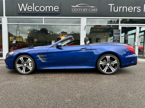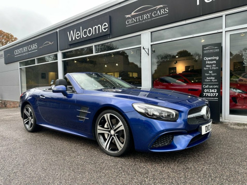 This Mercedes SL400 V6 Edition Roadster Automatic. Has covered 79016 miles benefiting from a full Mercedes service history comprising of a PDi + 9 further services. A true credit to its former keeper who has maintained and cherished this SL400 to the highest of standards. Giving you a specification one could wish for with luxury and performance driving in every aspect. A fine example throughout finished in Brilliant Blue with Black white stitched Nappa leather interior. and must be viewed to be appreciated. Offered for sale by Century Cars of West Sussex. Tailored Finance Packages and Nationwide Delivery. Trim - Light Aluminium with Longitudinal, Brilliant Blue, Driving Assistance Package, 19in Alloy Wheels - 5-Spoke Design - Hig, 8 Speakers with FrontBass, ABS - Anti-Lock Braking System with BAS , AIRSCARF - Neck Level Heating System, AMG Bodystyling, ATTENTION Assist, Active Bonnet - Pedestrian Safety Measur, Active Brake ASSIST, Active Park Assist with Parktronic, Adaptive Brake Lamps, Adaptive Brake System, Airbags - Dual Stage - Driver and Front , Airbags - Head and Sidebags - Driver and, Alarm System with Immobiliser and Interi, Ambient Lighting, Analogue Clock, Automatic Front Passenger Airbag Deactiv, Bluetooth Interface for Hands-Free Telep, COMAND Online System, Central Controller D