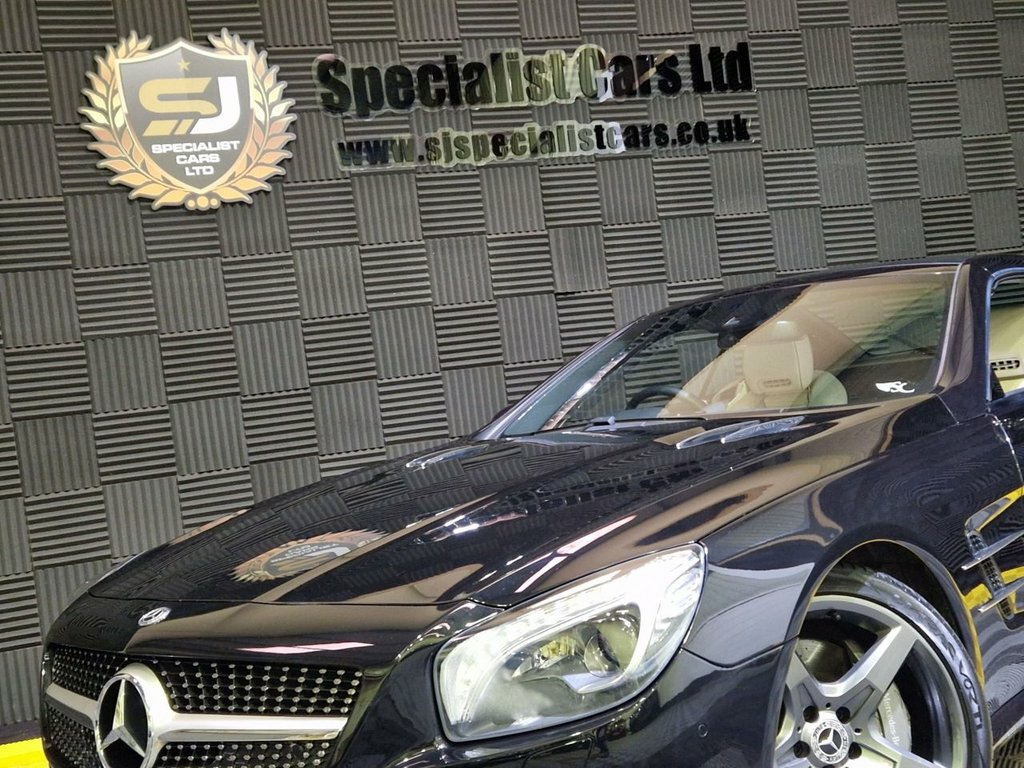 2014 / 14 Mercedes SL500 4.7 V8 AMG Sport Conv. Finished in Obsidian Black Metallic, with Cream Leather, 68000 miles , Full Service history, with 5 main dealer services and 6 Specialist Services. Last Owner Had Car For 6 Years, Spec Inc : 19" Genuine AMG 5 Spoke Alloys in Graphite Grey, Panoramic Vario Sunroof, Air Scarf, Electric Heated Memory seats, Harmon Kardon Surround Sound, Reverse Camera, Stunning Car. Warranties and Part Exchange Available. 10GB Music Register and MP3 Compatibilit, 19in Alloy Wheels - AMG 5 Spoke Design, 7-inch Colour Display, 8 Speakers with FrontBass, ABS - Anti-Lock Braking System, AMG Bodystyling - Front and Rear Apron -, AMG Sports Package, AMG Sports Suspension, ATTENTION Assist, Active Bonnet - Pedestrian Safety which , Active Light System, Active Park Assist with Parktronic, Adaptive Brake System with Full Hold Fun, Airbags - Dual Stage - Driver, Airbags - Dual Stage - Front Passenger, Airbags - Front Sidebags, Airbags - Head and Sidebags - Driver and, Alarm System with Immobiliser and Interi, Automatic Child Seat Recognition Sensor, Automatically Dimming Rear View Mirror a, BAS - Brake Assist, Bluetoot