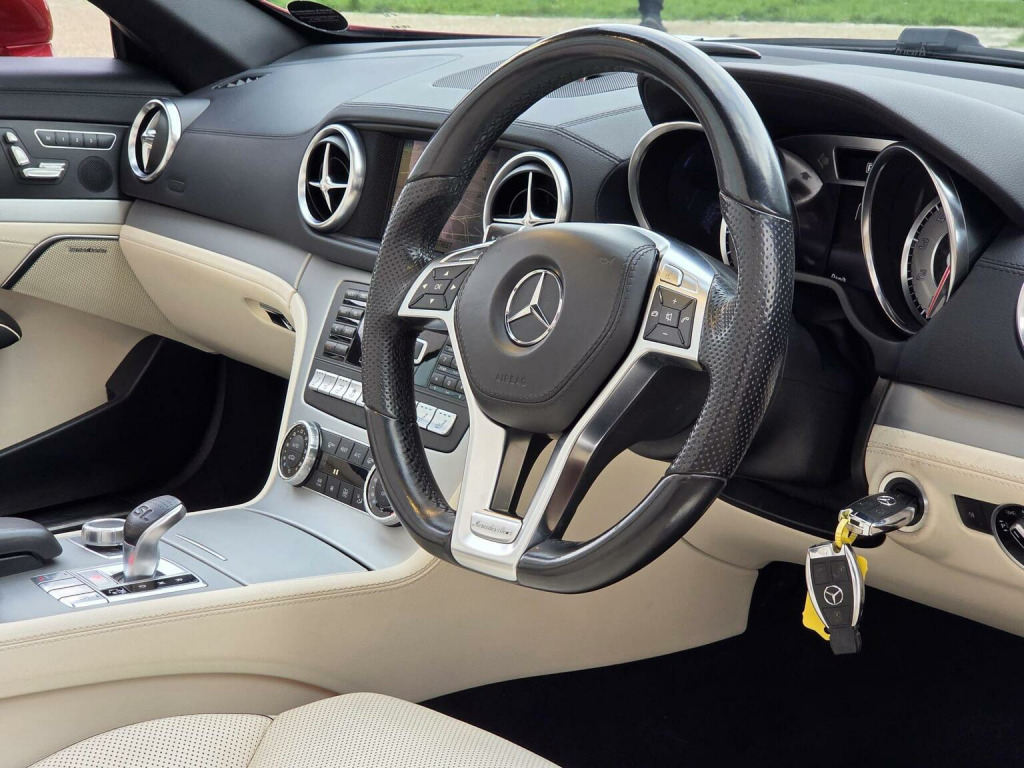 This 2015 Mercedes-Benz SL-Class 4.7 SL500 V8 AMG Sport G-Tronic+ Euro 6 (s/s) 2dr Convertible is currently available for £24,995 in Leicester Leicestershire with Petrol engine and Auto Clutch Manual gearbox. For more information or to arrange a viewing, click here to send us an email using form below.