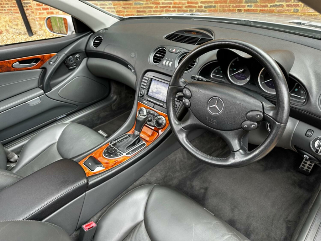 2005 Mercedes Benz SL 500. Few modern Mercedes-Benz models combine style, presence and engineering prowess as elegantly as the R230-generation SL 500. This particular example, delivered in 2005 and finished in the timeless pairing of Brilliant Silver coachwork with supple grey leather upholstery. Showing a mere 41,000 miles from new, its condition is nothing short of exemplary. Maintained meticulously by Mercedes-Benz main agents and highly regarded marque specialists, the car is accompanied not only by its original stamped service book but also by a substantial file of invoices, bills and records, a reassuring chronicle of careful ownership. The last custodian, an enthusiast with a growing private collection, parted with the car reluctantly only to make space for further acquisitions. Specification is exactly as the discerning driver would wish. A panoramic glass roof bathes the cabin in light, while the factory COMAND system provides satellite navigation and effortless control. Automatic climate regulation ensures year-round comfort, and Mercedes-Benzs acclaimed ABC sports suspension delivers the perfect balance of supple ride and precise handling. Completing the picture are handsome eighteen-inch alloy wheels, perfectly proportioned beneath the cars sculptural lines. The five-litre V8 is the beating heart of this SL 500: smooth, refined and effortlessly powerful, it transforms the car from a relaxed grand tourer into a spirited performer at a mere press of the throttle. With the fully automatic folding roof, the SLs dual character is irresistible refined coupé one moment, glamorous open roadster the next. With early SLs such as the R107 now commanding significant premiums, the R230 is poised to follow the same trajectory, and few examples offer the combination of low mileage, impeccable history and lovely presentation found here. Offered with a fresh MOT upon sale, this outstanding motor car is ready to delight its next custodian, whether as a jewel in a collection or as an elegant companion on the open road. Opportunities to acquire such low mileage SL 500s are increasingly rare. This is not merely a car; it is a statement of taste, discernment and appreciation for one of Mercedes-Benzs most accomplished modern classics. Come and see for yourself, any inspection welcome! We take all major cards, consider part exchange, and can even deliver to your door. For further details, please dont hesitate to get in touch. Additional high-quality photos and an exclusive video are available on our website and Facebook page. We encourage you to register your interest promptly to secure your opportunity and avoid disappointment.