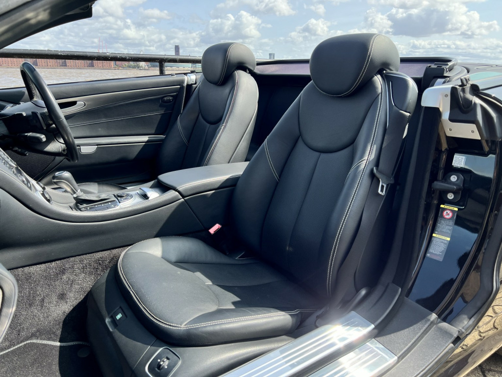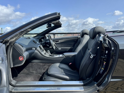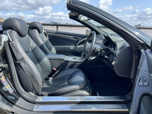 A rare car in Obsidian Black metallic with black leather sports upholstery complemented with white stitching. Great spec with panoramic glass roof, heated and cooled seats, keyless entry and start, BOSE sound system, xenon headlights, 19 Inch alloy wheels, airmatic suspension with ABC, cruise control, climate control, AMG body styling. Silky smooth 5.5 V8 with 388 BHP, the ultimate grand touring roadster for a fraction of the cost of a new V8 SL. , Complete with hand book, two keys, spare wheel with tools. Serviced at 8k, 11k, 16k, 22k, 29k, 34k, 47k, 50k, 52k and 59k.