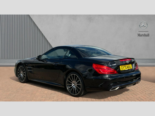 Mercedes-Benz SL Class SL 400 Grand Edition Premium 2dr 9G-Tronic Active park assist with parktronic system, AMG speed sensitive sports steering, Analogue clock, Attention assist, Automatic boot separator, Bluetooth interface for hands free telephone, Chequered flag design instrument cluster, COMAND HDD Navigation with radio/CD/DVD/MP3, 7" screen, traffic updates, speed limit assist, linguatronic voice control, SD card slot + online, Direct steer system with speed dependent servo assistance, DYNAMIC SELECT with a choice of driving modes (ECO, Comfort, Sport, Sport+ and Individual), ECO start/stop function, Reversing camera, Service indicator (ASSYST), Smartphone integration with Apple CarPlay, Soft closing aid for front side doors, Trip computer, AMG rear axle limited slip differential lock, Petrol Particulate Filter, Sports suspension with adaptive damping system lowered by 10mm, Central controller dial to operate audio functions and telephone, DAB Digital radio, Harman/Kardon logic 7 surround sound system + 9 speakers with amplifier, 2 Electric windows, A-wing trim in high-gloss black, Adaptive brake lights, AMG body styling, AMG boot lid spoiler in body colour, AMG radiator grille in silver chrome with twin louvre, AMG sports exhaust system with two twin chrome tailpipes, Automatic headlamp activation, Body colour bumpers, Electric adjustable heated door mirrors, Electrically powered wind deflector, Green tinted glass, Heated rear window with timer, Intelligent light system with LED headlights, active light function, cornering lights and adaptive high beam assist, LED daytime running lights, LED indicator lights, Magic vision control, Panoramic glass vario sunroof, Rain sensor windscreen wipers, 3 spoke flat bottom multifunction nappa leather sports steering wheel with silver gear shift paddles, Active multi-contour front seats with massage function, Airscarf - neck level heating, Ambient lighting, AMG floor mats, Black roof lining, Brushed stainless steel illuminated door sills with Mercedes Benz lettering, Comfort ventilated front seats, Cup holders, Electric adjustable front seats, Front armrest, Heated front seats, Nappa leather upholstery, Neck-pro front headrests, Two zone thermotronic luxury automatic climate control, Memory package - SL Class, Mirror pack - SL Class, ABS with Brake Assist, Active bonnet pedestrian safety measure, Active brake assist, Adaptive brake system with hold function, ASR traction control, Automatic front passenger airbag deactivation, Automatic roll over protection, Brake calipers in grey, Driver and passenger head and side airbags, Dual stage driver/passenger airbags, Electronic parking brake, EPS curve dynamic assist, Hill hold function, Pre-Safe anticipatory safety system, Seatbelt pretensioners, Tyre pressure monitoring system, Warning triangle and first aid kit, Alarm system/interior protection/immobiliser, Keyless Go, Remote central locking, Dark aluminium with longitudinal grain interior trim, Tyre sealant kit