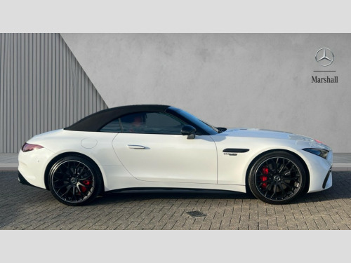 Mercedes-Benz SL Class SL 55 4Matic+ Premium Plus 2dr Auto AMG track pace, Attention assist, Bluetooth interface for hands free telephone, Central display, Cruise control, Driver display, Fingerprint scanner, Head up Display, Lane keeping assistant (LKA), MBUX augmented reality for navigation, MBUX Interior assistant, MBUX navigation premium, Mercedes-Benz emergency call system, Outside temperature gauge, PAS, Rear axle steering, Remote Services Premium, Service indicator (ASSYST), Smartphone integration with Apple CarPlay, Traffic sign assist, Trip computer, USB adapter cable, Wireless charging system for mobile devices in the front, AMG Ride Control suspension, AMG SPEEDSHIFT MCT 9-speed automatic sports transmission, Burmester surround sound system, DAB Digital radio, 2 Electric windows, 3rd brake light, Adaptive high beam assist plus, AMG body styling, AMG boot lid spoiler in body colour, AMG illuminated door sills with AMG lettering and with exchangeable cover, AMG Light Display - The projector fitted in the side skirts casts AMG lettering onto the asphalt, AMG Real Performance Sound, AMG spoiler lip, Automatic headlights, Body colour bumpers, Darkened headlamps and tail lights, Digital light headlamps, LED daytime running lights, Magic vision control, Model badge on boot lid and wings in high-gloss black, Radiator fins painted black, Rain sensor windscreen wipers, Rear boot, 2 cup holders in front, 2 individual rear seats, Airscarf - neck level heating, AMG Performance steering wheel in nappa leather, AMG steering wheel buttons, Front gesture control, Heated front seats, Neck-pro front headrests, Single front passenger seat, Steering wheel heating, THERMOTRONIC automatic climate control, AMG Night pack - SL Class, AMG Night pack II - SL Class, Energizing pack plus - SL Class, Load compartment pack - SL Class, Memory package - SL Class, Mirror pack - SL Class, Parking pack - SL Class, USB pack plus - SL Class, ABS, Active pedestrian safety system, AMG high performance compound brake system, Automatic roll over protection, Driver and passenger head and side airbags, Dual stage driver/passenger airbags, Electronic parking brake, ESP with ASR, Hill hold function, Manual passenger airbag deactivation function, Pedestrian protection, Red painted brake calipers, Tyre pressure monitoring system, Warning triangle and first aid kit, Keyless go with seemless door handles, KEYLESS-GO starting function, Remote central locking, Urban guard vehicle protection plus, AMG carbon fibre trim, 21" AMG multi-spoke light alloy wheels painted in matt black, Summer tyres, Tyre sealant kit