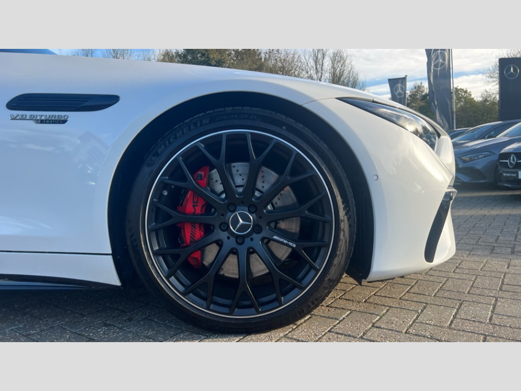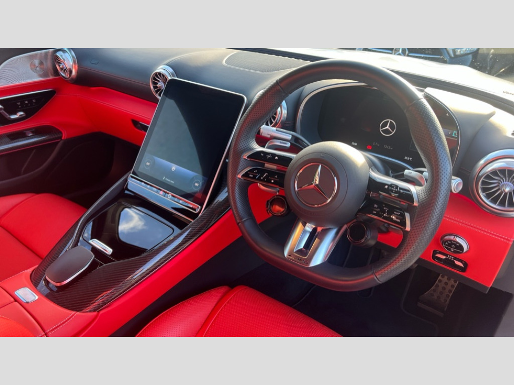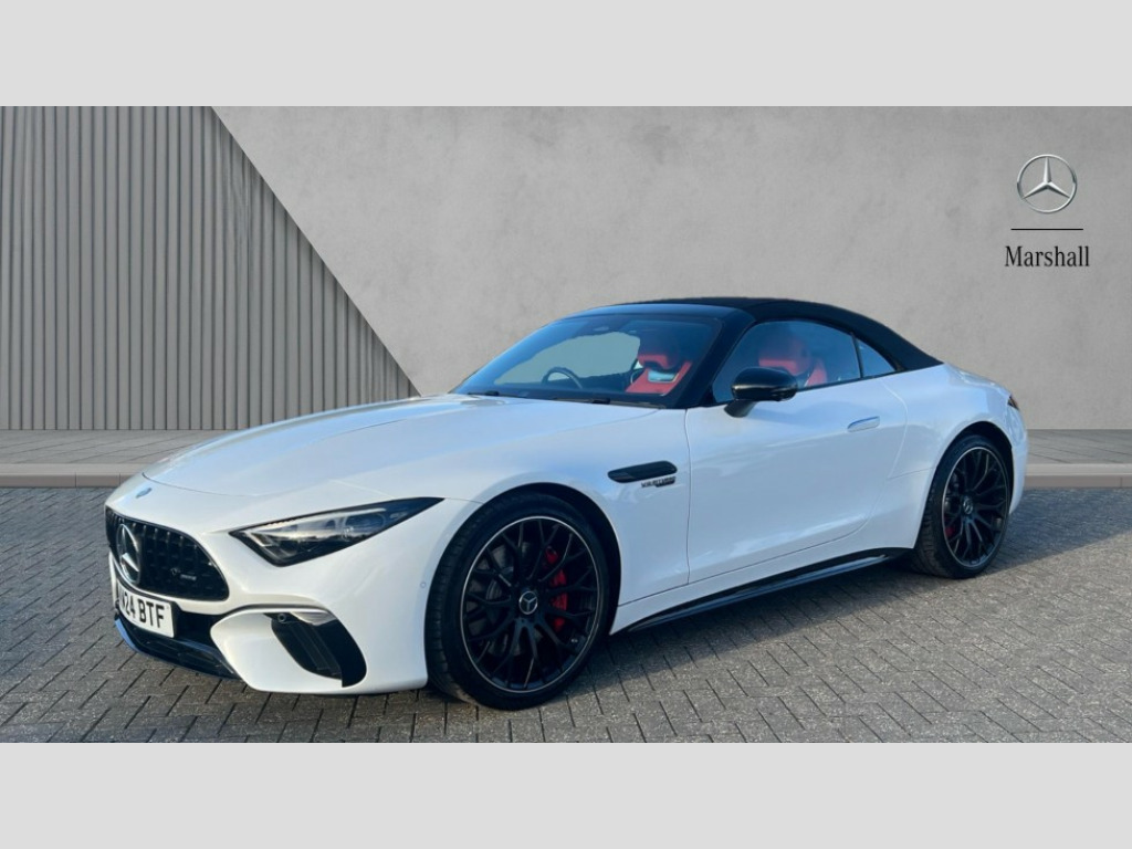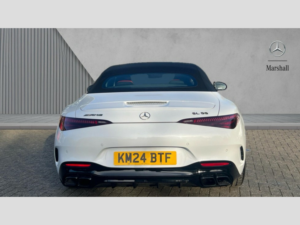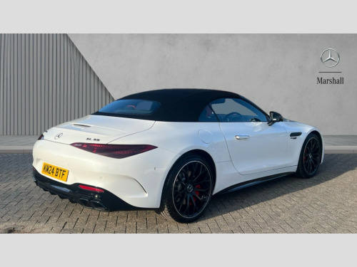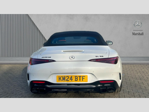 Mercedes-Benz SL Class SL 55 4Matic+ Premium Plus 2dr Auto AMG track pace, Attention assist, Bluetooth interface for hands free telephone, Central display, Cruise control, Driver display, Fingerprint scanner, Head up Display, Lane keeping assistant (LKA), MBUX augmented reality for navigation, MBUX Interior assistant, MBUX navigation premium, Mercedes-Benz emergency call system, Outside temperature gauge, PAS, Rear axle steering, Remote Services Premium, Service indicator (ASSYST), Smartphone integration with Apple CarPlay, Traffic sign assist, Trip computer, USB adapter cable, Wireless charging system for mobile devices in the front, AMG Ride Control suspension, AMG SPEEDSHIFT MCT 9-speed automatic sports transmission, Burmester surround sound system, DAB Digital radio, 2 Electric windows, 3rd brake light, Adaptive high beam assist plus, AMG body styling, AMG boot lid spoiler in body colour, AMG illuminated door sills with AMG lettering and with exchangeable cover, AMG Light Display - The projector fitted in the side skirts casts AMG lettering onto the asphalt, AMG Real Performance Sound, AMG spoiler lip, Automatic headlights, Body colour bumpers, Darkened headlamps and tail lights, Digital light headlamps, LED daytime running lights, Magic vision control, Model badge on boot lid and wings in high-gloss black, Radiator fins painted black, Rain sensor windscreen wipers, Rear boot, 2 cup holders in front, 2 individual rear seats, Airscarf - neck level heating, AMG Performance steering wheel in nappa leather, AMG steering wheel buttons, Front gesture control, Heated front seats, Neck-pro front headrests, Single front passenger seat, Steering wheel heating, THERMOTRONIC automatic climate control, AMG Night pack - SL Class, AMG Night pack II - SL Class, Energizing pack plus - SL Class, Load compartment pack - SL Class, Memory package - SL Class, Mirror pack - SL Class, Parking pack - SL Class, USB pack plus - SL Class, ABS, Active pedestrian safety system, AMG high performance compound brake system, Automatic roll over protection, Driver and passenger head and side airbags, Dual stage driver/passenger airbags, Electronic parking brake, ESP with ASR, Hill hold function, Manual passenger airbag deactivation function, Pedestrian protection, Red painted brake calipers, Tyre pressure monitoring system, Warning triangle and first aid kit, Keyless go with seemless door handles, KEYLESS-GO starting function, Remote central locking, Urban guard vehicle protection plus, AMG carbon fibre trim, 21" AMG multi-spoke light alloy wheels painted in matt black, Summer tyres, Tyre sealant kit