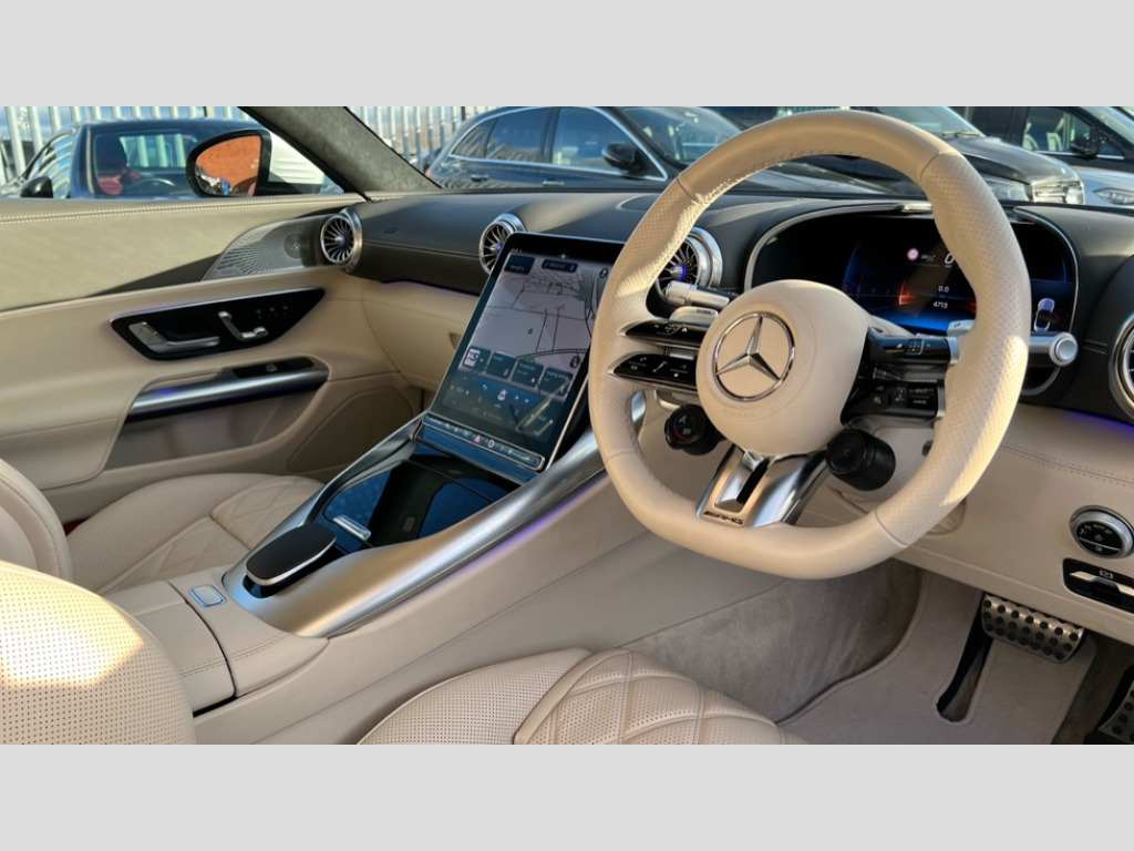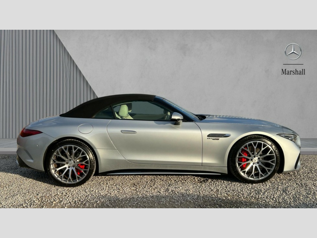 Mercedes-Benz SL Class SL 55 4Matic+ Touring Plus 2dr Auto AMG track pace, Attention assist, Bluetooth interface for hands free telephone, Central display, Cruise control, Driver display, Fingerprint scanner, Head up Display, Lane keeping assistant (LKA), MBUX augmented reality for navigation, MBUX Interior assistant, MBUX navigation premium, Mercedes-Benz emergency call system, Outside temperature gauge, PAS, Rear axle steering, Remote Services Premium, Service indicator (ASSYST), Smartphone integration with Apple CarPlay, Traffic sign assist, Trip computer, USB adapter cable, Wireless charging system for mobile devices in the front, AMG Ride Control suspension, AMG SPEEDSHIFT MCT 9-speed automatic sports transmission, Burmester surround sound system, DAB Digital radio, 2 Electric windows, 3rd brake light, Adaptive high beam assist plus, AMG body styling, AMG boot lid spoiler in body colour, AMG illuminated door sills with AMG lettering and with exchangeable cover, AMG Light Display - The projector fitted in the side skirts casts AMG lettering onto the asphalt, AMG Real Performance Sound, AMG spoiler lip, Automatic headlights, Body colour bumpers, Digital light headlamps, LED daytime running lights, Magic vision control, Model badge on boot lid and wings in high-gloss black, Rain sensor windscreen wipers, Rear boot, 2 cup holders in front, 2 individual rear seats, Airscarf - neck level heating, AMG Performance steering wheel in nappa leather, AMG steering wheel buttons, Front gesture control, Heated front seats, Manufaktur nappa leather upholstery, Neck-pro front headrests, Single front passenger seat, Steering wheel heating, THERMOTRONIC automatic climate control, AMG exterior chrome pack - SL Class, Energizing pack plus - SL Class, Load compartment pack - SL Class, Memory package - SL Class, Mirror pack - SL Class, Parking pack - SL Class, USB pack plus - SL Class, ABS, Active pedestrian safety system, AMG high performance compound brake system, Automatic roll over protection, Driver and passenger head and side airbags, Dual stage driver/passenger airbags, Electronic parking brake, ESP with ASR, Hill hold function, Manual passenger airbag deactivation function, Pedestrian protection, Red painted brake calipers, Seatbelts in macchiato, Tyre pressure monitoring system, Warning triangle and first aid kit, Keyless go with seemless door handles, KEYLESS-GO starting function, Remote central locking, Urban guard vehicle protection plus, AMG Aluminium trim, 21" AMG multi-spoke light alloy wheels, Summer tyres, Tyre sealant kit