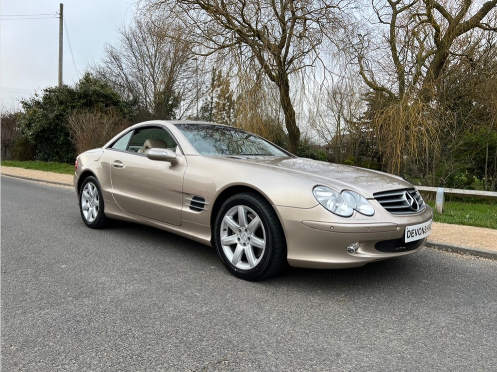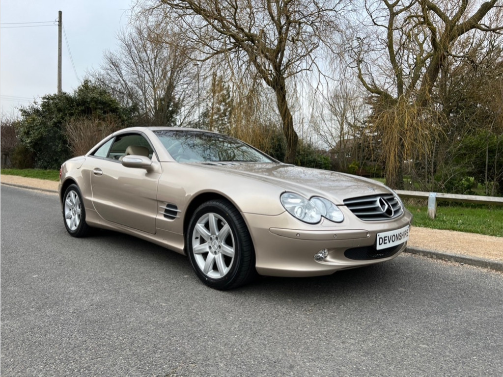Mercedes Benz SL500 V8 Convertible 2004 7-Speed Automatic. ONLY 17000 MILES FROM NEW. Finished in Rare Metallic Desert Silver with Full Champagne Leather Electric Heated Memory Seats. This Truly Magnificant Example was Sold New by MB of Sheffield on 22-04-2004 to it's First Owner. It was then Sold to It's 2 Owner in 2009 until recently. Factory Option's Include: Front/Rear Park Distance, Colour Sat/Nav with Multi CD HiFi, Xenon Headlights, Electric Memory Heated Seats, Wood Leather Steering Wheel, Special Order Leather Interior Pack, Cruise Control, Walnut Interior Pack, Electric Steering Column, Power Fold Mirrors. 2 Keys With Full Book pack. Full Service History and Full MOT History. This Car is without question we believe the Finest Example Available and is already a Rare Modern Classic. For More Detailed Information Please Call or email.,