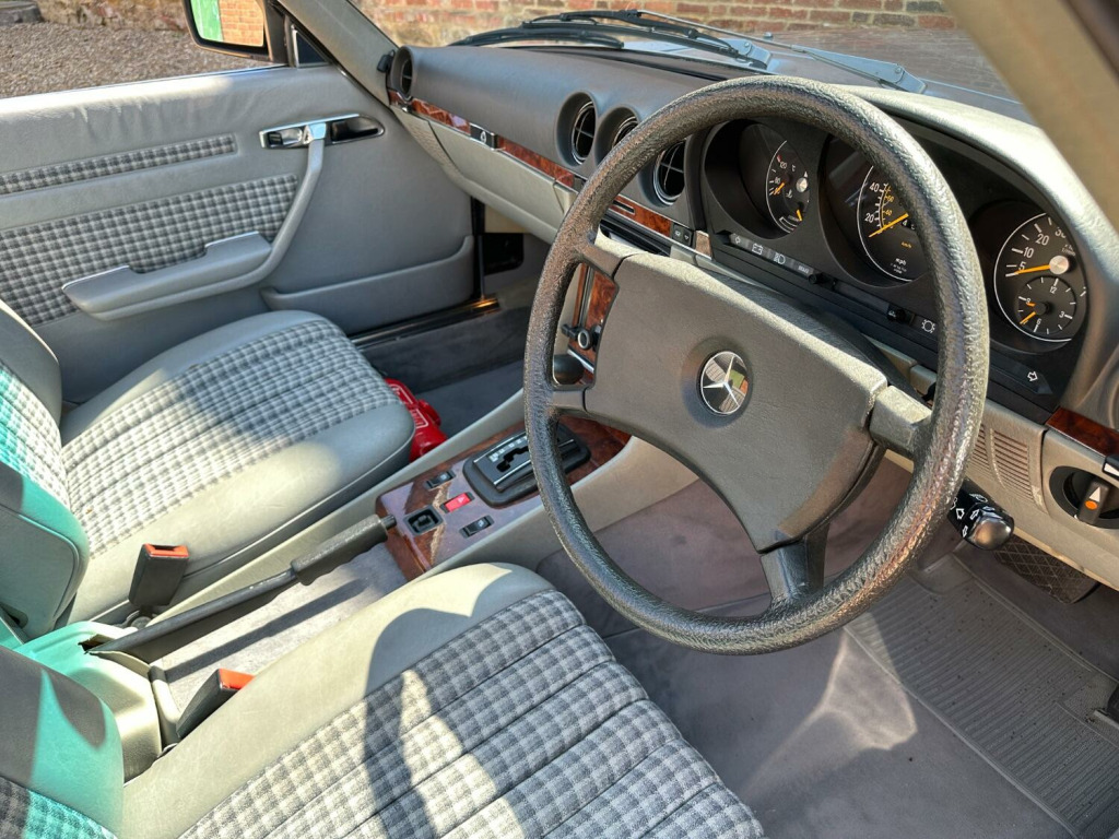 1985 Mercedes Benz 500 SL Automatic. (R107). Astral Silver with Grey Sports Check upholstery, new black soft top and factory hardtop. The Mercedes R107-series SL was launched in 1971 to replace the long-lived W113 Pagoda SL that first appeared in 1963. Though dispensing with Mercedes usual model identification, it was based on the suspension of the W114 Saloon and ran until 1989 with more than 237, 000 examples built, being the longest single series ever produced by Mercedes-Benz except for the G-Wagen. The Bruno Sacco-designed car was bigger, heavier and softer-riding than its predecessor, but can still handle and won the plaudits from distinguished motoring writers including LJK Setright. The 245bhp 500 SL made from 1980 had an all-alloy fuel-injected V8 and was made for Europe only and with 60mph available in 7. 4 secs the top speed was 140mph, faster even than the US, Japan and Australian 560 SL. Plenty of R107s come to market, but 500SLs are still a rarity, with only 11, 812 built. This fabulous R107 has covered just 59,000 miles from new and has been with its last keeper for the last 7 years, he purchased the cart from his uncle who bought the SL in August 1992 so it has effectively been in the same family for the last 33 years. The condition speaks for itself and the car has been cherished from new with just 4 owners in 40 years. The paintwork and upholstery belie their age and present beautifully with clean lines and very straight panels. On the road the car is equally as good with very responsive V8 engine mated to a smooth automatic gearbox that would happily travel around Europe on any road trip if required. Accompanying the 500SL is a sizeable history file containing lots of bills and invoices as well many old MoT test certificates which confirm the low mileage. This is an SL that could easily fit within any collection or equally be enjoyed on the show field or international touring. The Cherished Registration Number 324 BPH will remain on the car and very valuable in its own right. This is an great example of the 5-litre R107 with just 59,000 miles from new and a low ownership. We invite and encourage your inspection of this classic Mercedes. Although now tax and MoT exempt a fresh test will be applied upon sale for your own peace of mind. Absolutely any inspection welcome. All major debit and credit cards accepted. Part exchange considered. Free U.K mainland delivery. Please contact us for any further information. Lots more pictures and a video on our website and Facebook pages.