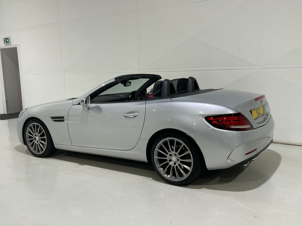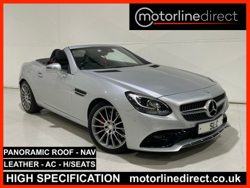 FINANCE & PART EXCHANGE AVAILABLE* - Only 49,119 miles from new, MERCEDES MAIN DEALER SERVICE HISTORY, 2 KEYS - this FANTASTIC MERCEDES BENZ SLC200 2.0 AMG LINE CONVERTIBLE AUTOMATIC is finished in stunning sports Iridium silver metallic & is complimented with contrasting full black leather sports trim and extends itself to the following additional features - Mercedes AMG Line Sports styling, full glass panoramic sunroof, on board satellite navigation system, air scarf, climate control / automatic air conditioning, trip computer, cruise control with speed limiter, leather trimmed multi function steering wheel with paddle shift, front & rear park distance control, driver & passenger heated front seats, Bluetooth telephone prep, DAB digital radio, media input, start / stop, attention assist, active brake assist, dynamic select, red seatbelts, electric adjustable & heated exterior mirrors, sports suspension, power assisted steering, abs, airbags, electric windows, remote central locking, head restraints, Mercedes brake calipers finished in superb sports red, Mercedes 18'' AMG multi spoke sports alloy wheels, Mercedes anti theft system. ***FINANCE AVAILABLE - subject to status. T&C's apply.***PART EXCHANGE AVAILABLE***ALL VEHICLES ARE HPI & NATIONAL MILEAGE REGISTER CHECKED***THE AA WARRANTY IS SUBJECT TO TERMS & CONDITIONS AND DOES NOT COVER VEHICLES THAT ARE BEING USED FOR TAXI, PRIVATE HIRE, CHAUFFEURING PURPOSES OR FOR REWARD.***Please note, that the specifications/components/features etc. are generic to that vehicle of the type advertised but may not be included in the specific vehicle that is for sale. It is for the intended purchaser to satisfy themselves of the presence or absence of any specifications/components/features before sale. Please ask if you are uncertain of anything and we will see if we can assist.. 18in Alloy Wheels - AMG Multi-Spoke Design, 7in Colour Display - High-Resolution, ABS - Anti-Lock Braking System with BAS - Brake Assist, AMG Bodystyling, ASR - Acceleration Skid Control, ATTENTION Assist, Active Bonnet - Pedestrian Safety Measure, Active Brake ASSIST, Adaptive Brake Assist with Hold Function, Adaptive Brake Lamps, Air Conditioning, Airbags - Dual Stage - Driver and Front Passenger, Airbags - Head and Sidebags - Driver and Front Passenger, Alarm System with Immobiliser and Interior Protection, Audio 20 Radio, Automatic Child Seat Recognition Sensor, Bluetooth Interface with HD Voice-Capable Hands-Free Function and Audio Streaming, Brake Pad Wear Indicator, Brushed Stainless Steel Sports Pedals with Rubber Studs, Central Controller Dial to Operate Audio and Telephone Functions, Crash-Responsive Head Restraints, Cruise Control - SPEEDTRONIC Variable Speed Limiter and Steering Wheel Gearshift Paddles, DAB Digital Radio Tuner, Door Mirrors - Electrically Adjustable and Heated, Door Sill Panels - Mercedes-Benz Lettering, Dynamic Select with a Choice of Driving Modes - Comfort - ECO - Sport - Sport Plus - Individual, ESP - Electronic Stability Programme, Electric Parking Brake, Electro-Hydraulic Vario-Roof, Exhaust System - Sports, First Aid Kit and Warning Triangle, Floor Mats with AMG Lettering, Headlamps - Halogen with Integrated LED Daytime Running Lamps, Headlight Assist - Automatic Headlight Activation, Instrument Cluster - Chequered-Flag Design with 4.5in TFT Multifunction Colour Display, LED Tail Lights, Lockable Glove Compartment, Media Interface Port for iPod or iPhone, Outside Temperature Display, Perforated Front Brake Discs and Brake Calipers with Mercedes-Benz Lettering, Power Assisted Steering, Pre-Wiring for Garmin Map Pilot Navigation System, Remote Boot Release, Remote Central Locking, Roll Over Protection, Seat Belt Pre-Tensioners - Front, Seats - Height Adjusters, Seats - Sports, Service Indicator ASSYST, Sports Suspension - Lowered by 10mm, Steering Column - Manually Adjustable for Height and Reach, Steering Wheel - Sports - Perforated Grip Area, Tirefit Tyre Sealant Kit, Trim - Light Carbon-Grain Aluminium, Tyre Pressure Monitoring System, USB Ports in Centre Console x2, Windows - Electric x2, Pre-Safe Anticipatory Safety System, Stowage - Glove Compartment Independently Lockable, Panoramic Glass Sunroof - Tinted, AIRSCARF - Neck Level Heating System, Heated Front Seats, Leather - Black.