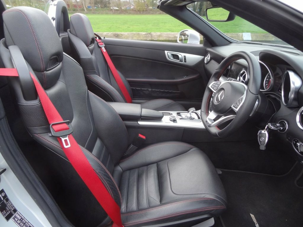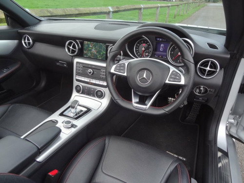 SWANCAR ESTABLISHED IN 1974 ARE DELIGHTED TO OFFER THIS STUNNING MERCEDES SLC 2.1 250D AMG LINE CONVERTIBLE 9 G-TRONIC FINISHED IN METALLIC IRIDIUM SILVER WITH A MERE 47000 MILES WITH 8 MAIN DEALER SERVICES . SPECIFICATION INCLUDES - GLASS PANORAMIC SUNROOF, FRONT AND REAR PARK ASSIST, HEATED SEATS WITH NECK LEVELING AIRSCARF HEATING, SATELLITE NAVIGATION, BLACK ARTICO LEATHER INTERIOR WITH RED SEAT BELTS AND STITCHING, ELECTRIC HEATED AND FOLDING MIRRORS, BLUETOOTH WITH HD VOICE AND AUDIO STREAMING, WIND-DEFLECTOR, 18 INCH MULTI SPOKE ALLOY WHEELS, BLIND SPOT MONITORING ANDREMOTE CENTRAL LOCKING WITH 2 REMOTE KEYS. Garmin Map Pilot Navigation System, Iridium Silver, Heated Front Seats, AIRSCARF - Neck Level Heating System, Mirror Package, Panoramic Glass Sunroof - Tinted, 18in Alloy Wheels - AMG Multi-Spoke Desi, 7in Colour Display - High-Resolution, ABS - Anti-Lock Braking System with BAS , AMG Bodystyling, ASR - Acceleration Skid Control, ATTENTION Assist, Active Bonnet - Pedestrian Safety Measur, Active Brake ASSIST, Adaptive Brake Assist with Hold Function, Adaptive Brake Lamps, Air Conditioning, Airbags - Dual Stage - Driver and Front , Airbags - Head and Sidebags - Driver and, Alarm System with Immobiliser and Interi, Audio 20 Radio, Automatic Child Seat Recognition Sensor, Bluetooth Interface wi