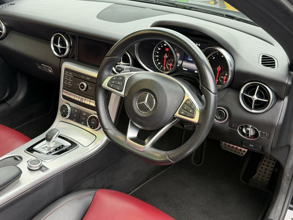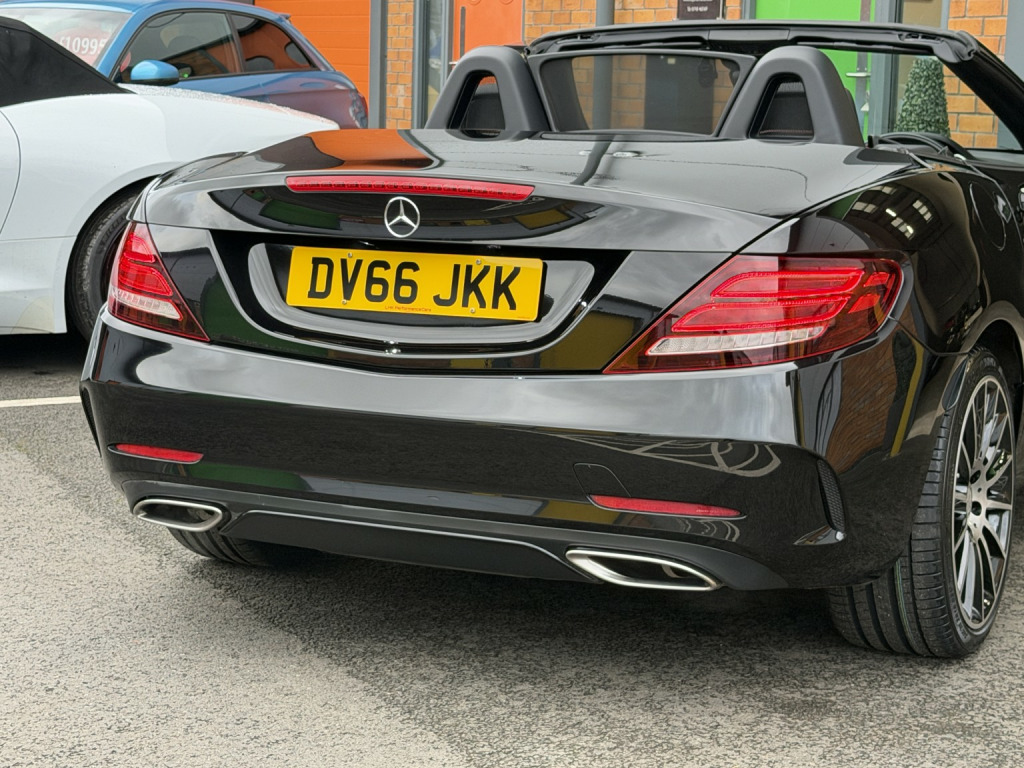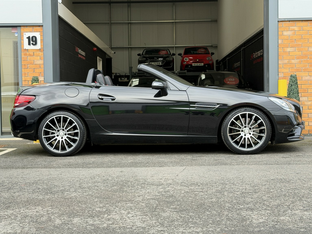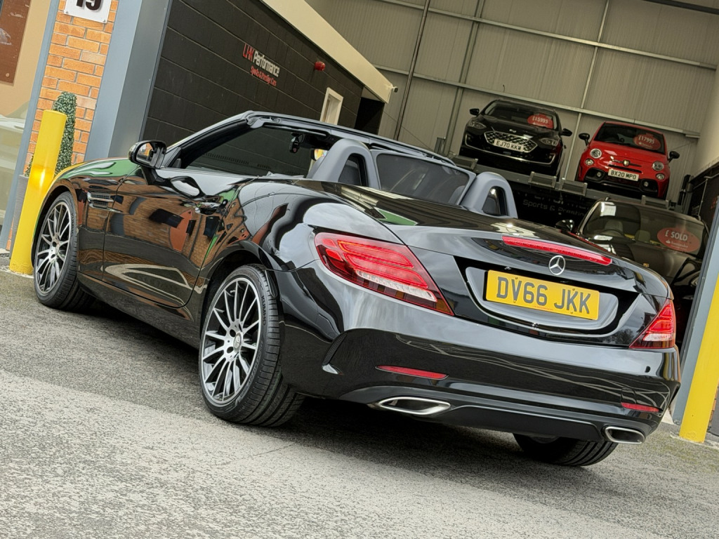 AN IMMACULATE LOW MILEAGE MERCEDES BENZ SLC IN OBSIDIAN BLACK METALLIC WITH CONTRAST RED/BLACK 2 TONE NAPPA LEATHER, JUST 2 FORMER KEEPERS! FULL SERVICE HISTORY AND A LOVELY SPECIFICATION! , , Upgrades/Spec Includes: Obsidian Black Metallic Paintwork, Red/Black Nappa 2 Tone Leather Sports Seats, Heated Seats, Airscarf System, Audio 20 With Navigation System, Bluetooth Handsfree With Bluetooth Audio, DAB Radio, Air Conditioning, Dynamic Select, Auto Lights/Wipers, Auto Dimming Mirrors, Fixed Glass Roof, Live Traffic Updates, Multi Function Leather Steering Wheel With Paddle Shift, Wind Deflector, AMG Sports Package, Sports Suspension, AMG Styling Package, AMG Night Package, LED Daytime Running Lights, Cruise Control, Rear View Camera, 18 Multi Spoke 2 Tone Wheels With 4 New Premium Brand Tyres, 2 Keys. Serviced At 9118 Miles, 12311 Miles, 13826 Miles, 15247 Miles, 16487 Miles, 18151 Miles, 19806 Miles, 20937 Miles And 27684 Miles. , SPEAK TO US ABOUT OUR FLEXIBLE LOW RATE FINANCE OPTIONS, OR TRY OUR FREE FINANCE ELIGIBILITY CHECKER ON OUR WEBSITE!, , ANY PART EXCHANGE ACCEPTED!