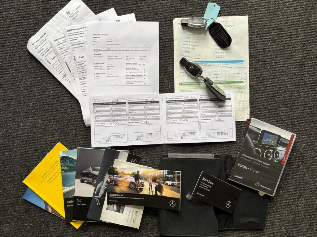SP Cars are excited to offer this beautiful 2017/67 Mercedes-Benz SLC250d 2.1 AMG Line G-Tronic Euro 6 (s/s) 2dr Convertible, presented in metallic Selenite Grey, three previous owners from new, Only 30,800 miles with full service history at 5k, 11k, 15k, 19k and 24k. Hpi Clear. 12 months MOT issued upon sale. EURO 6 Emissions and ULEZ Compliant. Please contact us directly for any further information or if you wish to reserve any of our vehicles. Check out our 5* reviews and a full walkaround video on our website www.spcars.net. We are FCA regulated and can arrange competitive finance packages to suit your needs. We have the V5, complete handbok pack, 2 keys, locking wheel nut, tool kit and 1st Aid kit. Viewing is by appointment only please. Please ring before travelling to avoid disappointment. The Great Spec includes , COMAND Navigation, 18 AMG Satin Black Alloys Upgrade, Panoramic Roof, Full Black Leather With Red Stitching, Red Seat Belts, Front And Rear Parking Sensors, Wind Defector, Dynamic Select with a Choice of Driving Modes - Comfort - ECO - Sport - Sport Plus - Individual, Electro-Hydraulic Vario-Roof, DAB Digital Radio Tuner, Media Interface Port for iPod or iPhone, Bluetooth Interface with HD Voice-Capable Hands-Free Function and Audio Streaming, Cruise Control - SPEEDTRONIC Variable Speed Limiter and Steering Wheel Gearshift Paddles, ABS - Anti-Lock Braking System with BAS - Brake Assist, AMG Bodystyling, Remote Boot Release, Air Conditioning, Sports Suspension - Lowered by 10mm, Roll Over Protection, Audio 20 Radio, Crash-Responsive Head Restraints, Door Mirrors - Electrically Adjustable and Heated, ESP - Electronic Stability Programme, ASR - Acceleration Skid Control, Floor Mats with AMG Lettering
