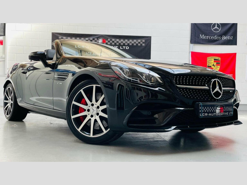 WOW!!! GREAT CAR, GREAT SPEC, GREAT PRICE, Metallic Obsidian Black With Contrasting Factory Option Bi-Colour Heated Leather, LCR-AUTOMOTIVE LTD Are Proud To Offer This Stunning Mercedes SLC AMG43 This is a Mercedes-Benz SLC43 V6 AMG, registered in 2018 and boasting a 3.0L petrol engine. ONLY £195 ROAD TAX, As an AMG trim model, this car has had only two owners and comes with low mileage of just 23,000 miles. The full dealership service history and a clear vehicle history check provide peace of mind. The last service was completed on 14th December 2024 at 22,634 miles 4 New Tyres Have Been Fitted and New Rear Brake Discs And Brake Pads Have Also Just Been Fitted. This Mercedes Has A Full Mercedes Service History Having Been Serviced At 4521 Miles 09/19, 7080 Miles 09/20, 9191 Miles 09/21, 14761 Miles 08/22, 20032 Miles 08/23, and the last on at 22634 Miles 12/24 , This SLC AMG 43 Has Dynamic Drive Select With The Most Exiting Modes Being Sport and Sport Plus Which Really Unleashes This Beast and A Great Soundtrack From Both Engine And Exhaust and The 9 Speed Auto Box Changes Gear Very Quickly, Its Great Fun!, Equipped with desirable features, this SLC includes Night Pack, Comand Online Services, Smart Phone Integration, Apple Car Play, Navigation, Air-glide Wind Deflector, Airscarf Neck Level Heating System, Keyless Go with Keyless Entry, Cruise Control, and the Memory Package with Memory Seats. The interior is enhanced with High Gloss Black Ash-Wood trim and Illuminated Door Sill Panels, AMG High Performance Brakes. It also comes with a Comprehensive warranty and a long MOT, valid until MAY 11TH 2026. This Euro 6 compliant vehicle stands out with its impressive acceleration, reaching 0-62mph in just 4.7 seconds. This quick acceleration makes it a thrilling drive, setting it apart from similar vehicles. WE ARE PROUD TO BE AWARDED AUTOTRADER HIGHLY RATED FOR CUSTOMER SERVICE FOR THE 4TH CONSECUTIVE YEAR AND PLEASE CHECK OUT ALL OF OUR 5 STAR AUTOTRADER CUSTOMER REVIEWS TO GIVE YOU CONFEDENCE IN US AND OUR CARS.