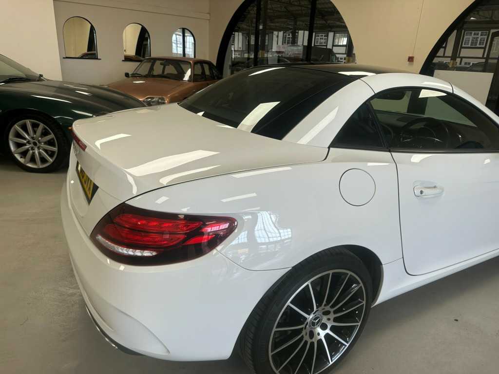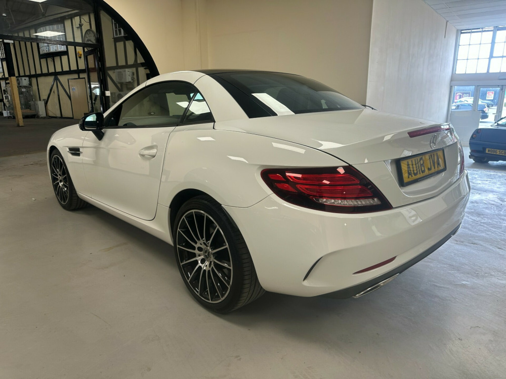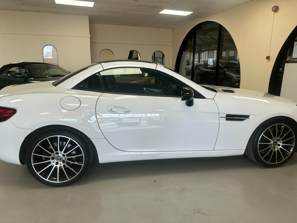 2018 Mercedes-Benz SLC SLC 180 AMG LINE Full service history with Mercedes main dealer This 2-Door convertible car has only 45000 miles on it and is powered by petrol, making it a stylish and efficient choice for driving around. With 2 seats and 2 doors, it offers a sleek and sporty design perfect for any driver looking for comfort and speed. It is also ULEZ compliant, ensuring that it meets the necessary emissions standards for driving in low emission zones. With only 1 previous registered keeper, this well-maintained vehicle offers both reliability and style. Whether cruising through the city or taking a scenic road trip, the Mercedes-Benz SLC provides a memorable driving experience for any car enthusiast.