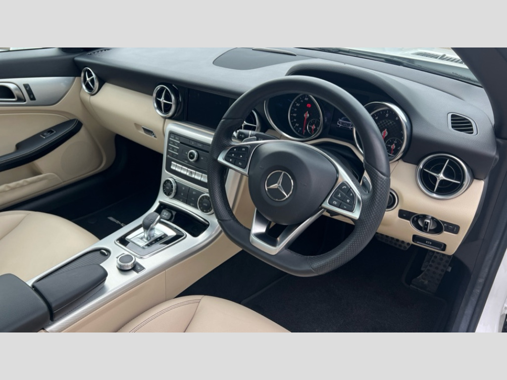 Mercedes-Benz SLC SLC 200 AMG Line 2dr 9G-Tronic Attention assist, Bluetooth system, Chequered flag design instrument cluster, DYNAMIC SELECT with a choice of driving modes (ECO, Comfort, Sport, Sport+ and Individual), Outside temperature gauge, Remote boot release, Service indicator (ASSYST), Trip computer, Sports suspension, 2 USB ports in centre console, DAB Digital radio, Media interface, Adaptive brake lights, AMG bodystyling, AMG sports exhaust system, Automatic headlamp activation, Body colour bumpers, Electric front windows, Electrically adjustable and heated door mirrors, Electro hydraulic vario roof, LED daytime running lights, LED tail lights, 3 spoke flat bottom multi-function perforated leather steering wheel, Active head restraints, AMG floormats, Auto Mercedes-Benz child seat recognition sensor, Brushed stainless steel sports pedals with rubber studs, Driver/front passenger seat height adjustment, Front centre armrest, Lockable glovebox, Sports seats, Steering wheel gearshift paddles, ABS with Brake Assist, Adaptive brake system, Brake calipers with Mercedes-Benz lettering + perforated brake discs, Driver/front passenger head+thorax airbag, Dual stage driver/passenger airbags, Electronic parking brake, ESP with Acceleration skid control (ASR), Hill hold function, Seatbelt pretensioners, Tyre pressure monitoring system, Warning triangle and first aid kit, Alarm system/interior protection/immobiliser, Tyre sealant kit