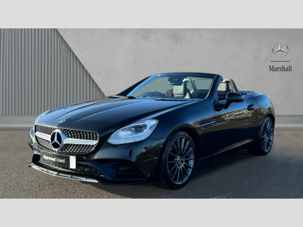 Mercedes-Benz SLC SLC 250d AMG Line 2dr 9G-Tronic Attention assist, Bluetooth system, Chequered flag design instrument cluster, DYNAMIC SELECT with a choice of driving modes (ECO, Comfort, Sport, Sport+ and Individual), Outside temperature gauge, Power Steering, Remote boot release, Service indicator (ASSYST), Trip computer, Diesel particulate filter, Sports suspension, 2 USB ports in centre console, DAB Digital radio, Media interface, Adaptive brake lights, AMG bodystyling, Automatic headlamp activation, Body colour bumpers, Electric front windows, Electrically adjustable and heated door mirrors, Electro hydraulic vario roof, LED daytime running lights, 3 spoke flat bottom multi-function perforated leather steering wheel, Active head restraints, AMG floormats, Auto Mercedes-Benz child seat recognition sensor, Brushed stainless steel sports pedals with rubber studs, Driver/front passenger seat height adjustment, Front centre armrest, Lockable glovebox, Sports seats, Steering wheel gearshift paddles, ABS with Brake Assist, Adaptive brake system, Brake calipers with Mercedes-Benz lettering + perforated brake discs, Driver/front passenger head+thorax airbag, Dual stage driver/passenger airbags, Electronic parking brake, ESP with Acceleration skid control (ASR), Seatbelt pretensioners, Tyre pressure monitoring system, Warning triangle and first aid kit, Alarm system/interior protection/immobiliser, Tyre sealant kit