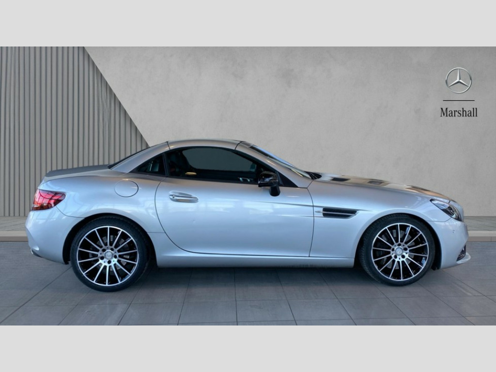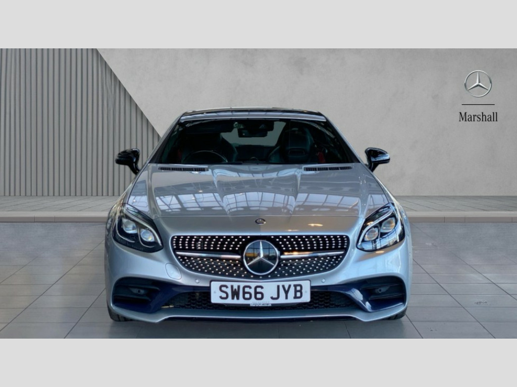 Mercedes-Benz SLC SLC 300 AMG Line 2dr 9G-Tronic Attention assist, Bluetooth system, Chequered flag design instrument cluster, DYNAMIC SELECT with a choice of driving modes (ECO, Comfort, Sport, Sport+ and Individual), Outside temperature gauge, Power Steering, Remote boot release, Service indicator (ASSYST), Speedtronic cruise control, Trip computer, Sport exhaust system, Sports suspension, 2 USB ports in centre console, DAB Digital radio, Media interface, Adaptive brake lights, AMG bodystyling, Automatic headlamp activation, Body colour bumpers, Electric front windows, Electrically adjustable and heated door mirrors, Electro hydraulic vario roof, LED daytime running lights, 3 spoke flat bottom multi-function perforated leather steering wheel, Active head restraints, AMG floormats, Auto Mercedes-Benz child seat recognition sensor, Brushed stainless steel sports pedals with rubber studs, Driver/front passenger seat height adjustment, Front centre armrest, Lockable glovebox, Sports seats, Steering wheel gearshift paddles, ABS with Brake Assist, Adaptive brake system, Brake calipers with Mercedes-Benz lettering + perforated brake discs, Driver/front passenger head+thorax airbag, Dual stage driver/passenger airbags, Electronic parking brake, ESP with Acceleration skid control (ASR), Seatbelt pretensioners, Tyre pressure monitoring system, Warning triangle and first aid kit, Alarm system/interior protection/immobiliser, Tyre sealant kit