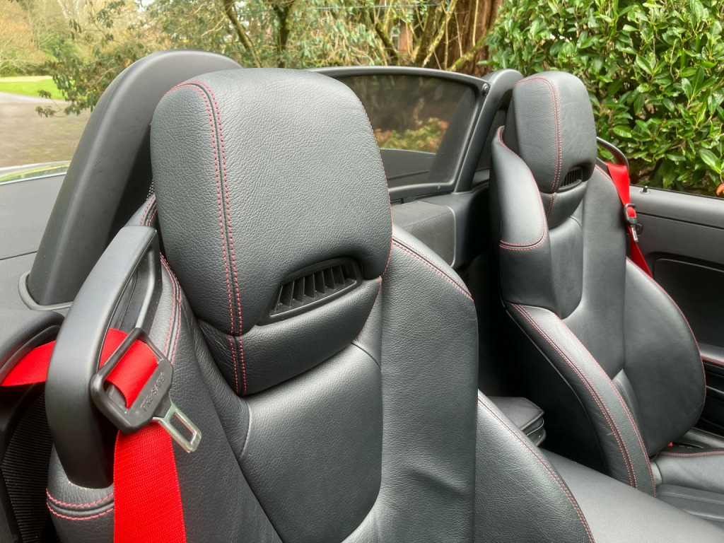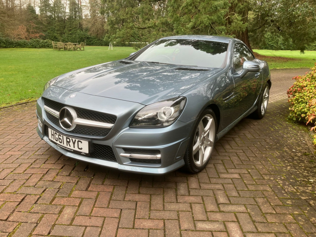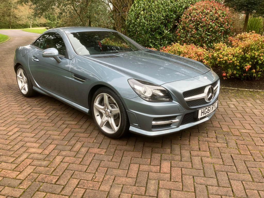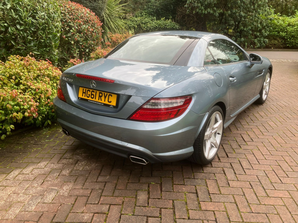 Galenite Blue metallic with Black leather and Red stitching. Only 22400 mls from new with a comprehensive service history from Mercedes main dealers/independents. Superb specification of this limited edition model includes:, Full AMG body styling,18in AMG alloys,Heated leather seats with Red stitching,Red seatbelts, Air Scarf neck heating,Comand Navigation,DAB Radio,Bluetooth,Air con,Cruise control,Electric mirrors and Wind deflector. An exceptional low mileage SLK that has undoubtably been cherished!