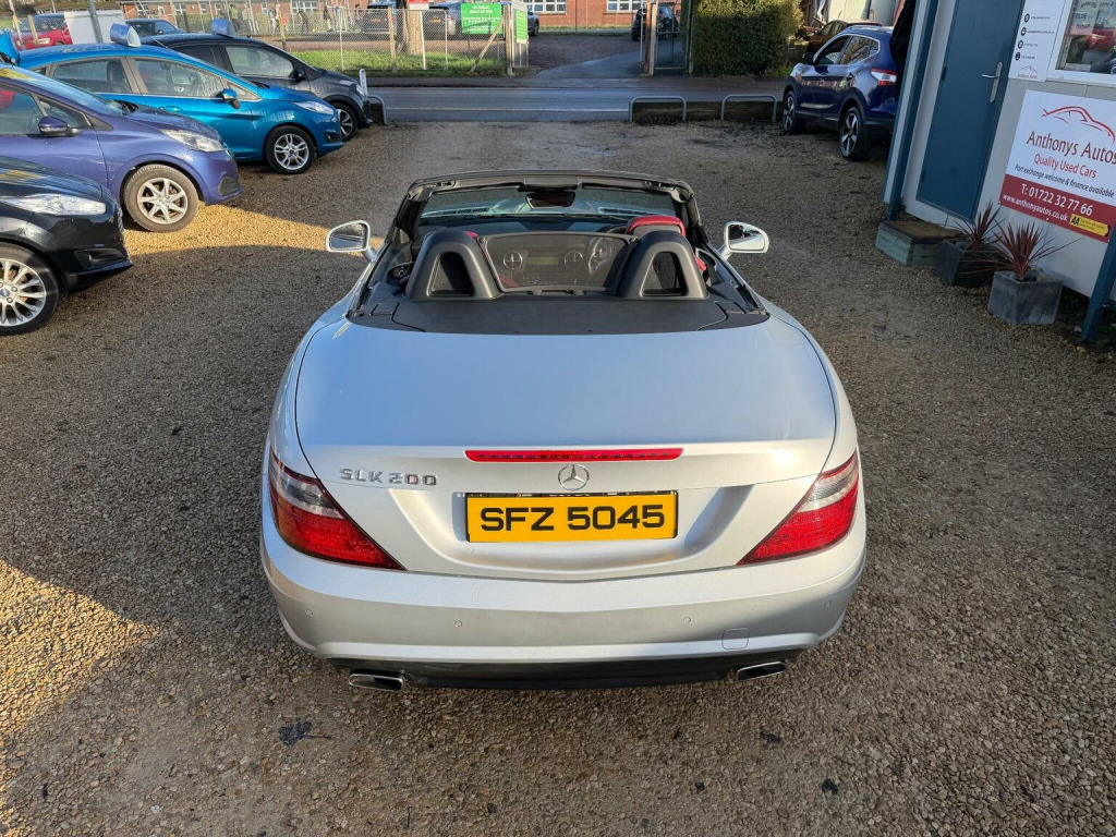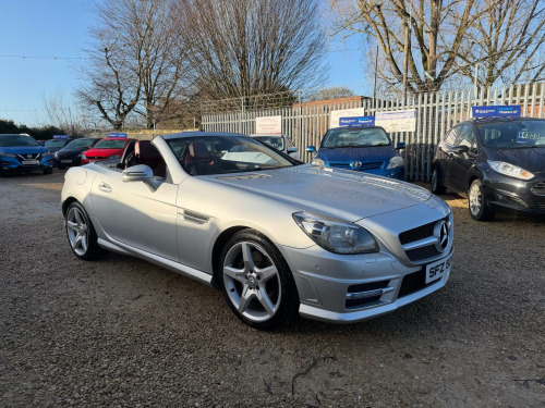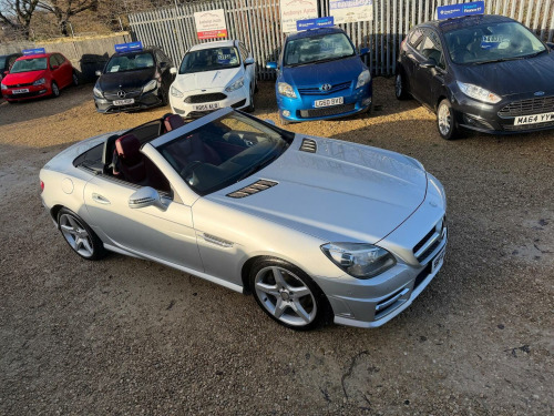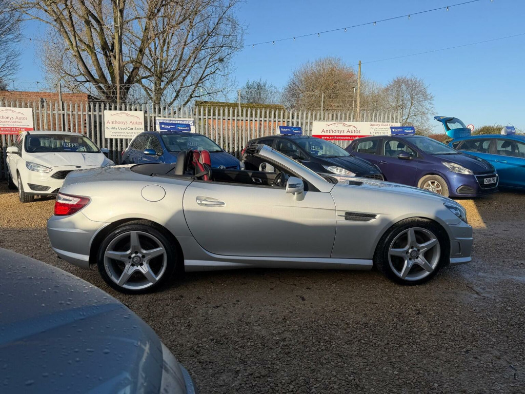 A Stunning Mercedes-Benz SLK 1.8 SLK200 BlueEfficiency AMG Sport Edition 125 G-Tronic+ Euro 5 (s/s) 2dr in Silver. 91k miles and comes with an excellent service history & NEW MOT. Specification includes, Heated Red Leather Sports Seats, Air Scarf, Bluetooth, electric windows, Dual climate control, Rain sensors, Xenon Headlights, Hands Free Bluetooth Phone, auto lights, remote central locking, Alarm, immobiliser, dual AC, USB, AUX port, driver information centre, auto dipping rear view mirrors, Isofix, alarm, Leather-covered steering wheel, trip computer, third brake light, traction control, load cover, front fog fights, 2 keys and much more.HPI CLEAR. 6 months warranty included. We can also arrange competitive 0% deposit finance. Why not part exchange your old car? Free 12 months AA roadside breakdown and recovery. Part exchange Welcome. **FINANCE AVAILABLE**. Call today to view and drive!