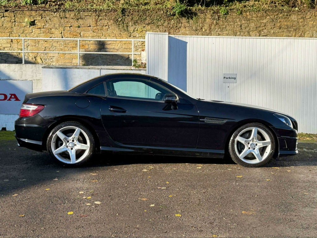 Fantastically Priced & Great Value: ULEZ Compliant, Comprehensive Warranty Cover Incl. Nationwide Delivery Options Available, Incl. Home & Office Delivery, Warranted Low Mileage. We Are Proud To Present A Great Example of this Stunning Roadster Mercedes SLK200 BlueEfficiency AMG Sport G-Tronic+, Registered March 2013/13. Finished In Obsidian Black Metallic With Full Black Leather Interior. Only Two Owners From New, Comes With Full Service History, Mercedes Franchise Main Dealer & Mercedes Independent Specialist, 14 Service Entries, 2 key Fobs, Leather Folder, all The Manuals & Digital Service Record, MOT Exp: 13/04/2026. Great Spec: Obsidian Black Metallic, Electric Folding Vario Roof, AMG Sports Pack, Inck Aerodynamics, 18'' AMG 5 Spoke Alloys, Agility Control Sports Suspension: Eco, Comfort, Sports, Multi Functional Flat Bottom Leather Steering Wheel With Paddle shift, LED Day Time Running Lights, LED Rear Lights, Cruise Control With Speed Limiter, Media/DAB/Radio/CD/Changer/USB/Blue-Tooth With Music Streaming, Rain Sensor, Auto Lights, Auto Wipers, Heated Electric Side Mirrors, Full Leather Seats With Contrasting White Sitiching & Brushed Aluminium Inserts, Air-Conditining Climate Control, Cup Holders, AMG Floor Matts, Tyre Pressure Monitoring System, Spare Wheel. in alloy wheels - amg 5 spoke design, abs - anti-lock braking system, amg bodystyling - front-rear and side skirts, asr - acceleration skid control, attention assist, aux-in socket and usb interface in the centre armrest, adaptive brake system with hold function-hill start assist, air conditioning, airbag - front passenger, airbags - driver, airbags - head and sidebags - driver and front passenger, airbags - sidebags for driver and front passenger, alarm system with immobiliser and interior protection, audio 20 radio-cd, automatic child seat recognition sensor, bas - brake assist, bluetooth interface for hands-free telephone, central controller dial to operate audio and telephone functions, cruise control, dab digital radio tuner, daytime running lights - led, door mirrors - electrically adjustable and heated with led indicators, esp - electronic stability programme, electric windows - front, electro-hydraulic vario-roof, first aid kit, head restraints - front seats - neck-pro active, headlamp assist - automatic headlamp activation, outside air temperature gauge, passenger seat - height adjustable, perforated front brake discs and brake calipers with mercedes-benz lettering, power assisted steering, pre-safe anticipatory safety system, pre-wiring for becker map pilot navigation system, remote boot release, remote central locking, roll over protection, seats - height adjusters, seats - sports, spare wheel - space saver, speedtronic variable speed limiter, sports suspension, steering column - manually adjustable for height and reach, steering wheel - gear shift paddles, steering wheel - sports-3-spoke-multifunction-trimmed nappa leather-flat bottom, tinted glass - green, trim - brushed aluminium, tyre pressure loss warning system, warning triangle, wind deflector - fabric, comand online system with integrated 6cd changer, cup holders, leather - black, rain sensing windscreen wipers, media interface, telephone pre-wiring with hands-free facility