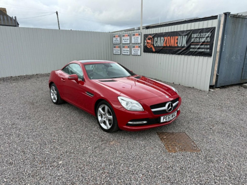 Mercedes-Benz SLK 1.8 SLK200 BlueEfficiency Edition 125 G-Tronic+ Euro 5 (s/s) 2dr ? PE61WHG 2011 (61) | 43,300 miles | Petrol | Automatic (G-Tronic+) | Red | 4 Owners | ULEZ Compliant A stylish and refined roadster, this Mercedes-Benz SLK200 Edition 125 offers open-top driving pleasure with premium Mercedes quality. With just 43,300 miles, a smooth G-Tronic+ automatic gearbox, and striking red paintwork, it?s a superb example of a modern classic convertible ? and it?s ULEZ compliant. Vehicle Highlights: 1.8 SLK200 Petrol | 184PS G-Tronic+ Automatic with Paddle Shift Euro 5 ? ULEZ Compliant Low mileage ? just 43,300 miles 4 Owners from new Finished in Brilliant Red Edition 125 Features: Electrically operated folding hard-top roof Full Leather Upholstery Heated Seats & Airscarf (neck-level heating) Multifunction Steering Wheel COMAND Infotainment ? Sat Nav, Bluetooth, CD & Media Cruise Control with Speed Limiter Automatic Headlights & Wipers 18? AMG Alloy Wheels Front & Rear Parking Sensors Peace of Mind: Fresh MOT ? no advisories New Oil & Filter Service Completed 3 Month / 3,000 Mile Nationwide Warranty Included All Vehicles HPI Clear Why Buy From Us? All Vehicles HPI Clear Nationwide Delivery Available Flexible Finance Options Part Exchange Welcome Carzone UK ? Newport, NP20 2JR 01633 212398 | 07375 840676 (WhatsApp available for walkarounds) www.carzoneuk.co.uk Convertible Driving | Premium Mercedes Quality | Low Mileage Roadster | U 17in Alloy Wheels - 5 Spoke Design, ABS - Anti-Lock Braking System, ASR - Acceleration Skid Control, ATTENTION Assist, AUX-In Socket and USB Interface in the C, Adaptive Brake System with Hold Function, Air Conditioning, Airbag - Front Passenger, Airbags - Driver, Airbags - Head and Sidebags - Driver and, Airbags - Sidebags for Driver and Front , Alarm System with Immobiliser and Interi, Audio 20 Radio-CD, Automatic Child Seat Recognition Sensor, BAS - Brake Assist, Bluetooth Interface for Hands-Free Telep, Central Controller Dial to Operate Audio, Cruise Control, DAB Digital Radio Tuner, Daytime Running Lights - LED, Door Mirrors - Electrically Adjustable a, ESP - Electronic Stability Progr