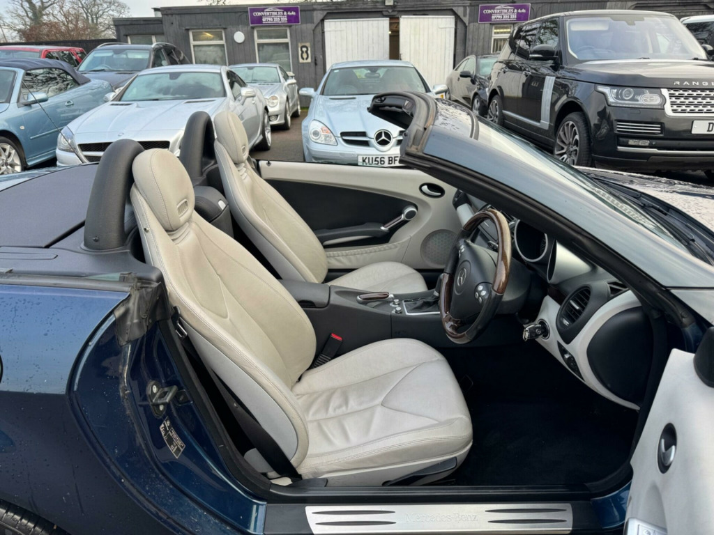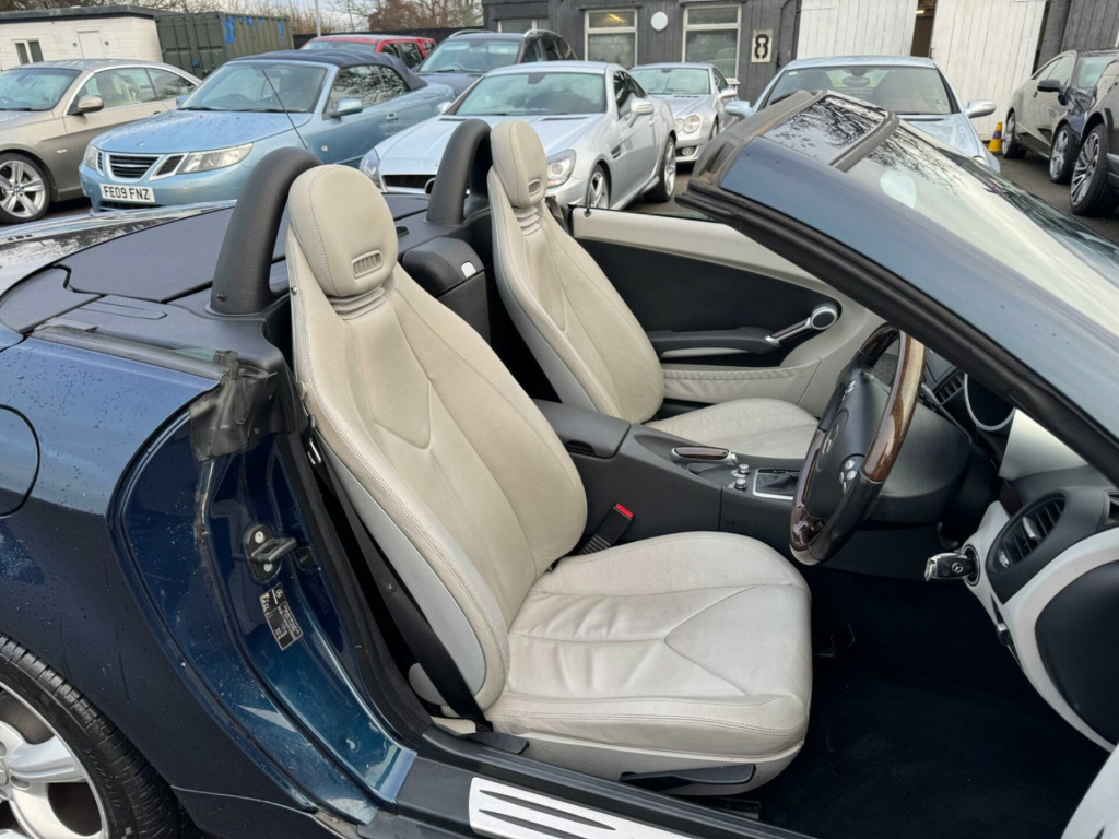 CHOICE OF 4 SLK'S THE OTHER CAR THE LATER SHAPE MODEL A W172 MODEL 62 REG 43K SILVER BLACK HEATED LEATHER WITH AIR-SCARF £9500..00 THIS Mercedes-Benz SLK 1.8 SLK200K Tiptronic FULLY AUTOMATIC Euro 4 2dr POWER ROOF CONVERTIBLE IT LOOKS AMAZING IN THE BEST COLOUR AZURE BLUE METALLIC CONTRASTING ALPACA PALE GREY LEATHER HEATED SEATS WITH AIR-SCARF (NECK LEVEL HEATING) AND ALUMINIUM TRIM TO THE DASH AND DOOR CARDS YES VERY SMART. THE LAST LADY OWNER HAS LOVED AND CHERISHED THE CABRIOLET FOR YEARS & YOU CAN TELL THAT BY THE SUPERB CONDITION THE IS IN YES AND IT'S REALLY GOOD MILEAGE FOR THE YEAR 72K WITH A GREAT SERVICE HISTORY SERVICES 8 MAIN DEALER. THE ROADSTER HAS A POWER CONVERTIBLE SUNROOF, FACTORY TELEPHONE BLUETOOTH TELEPHONE CONNECTION, AIR SCARF, STEREO RADIO/CD-PLAYER, REMOTE CONTROL CENTRAL LOCKING SYSTEM, 17'' ALLOY WHEELS WITH GOOD TYRES. THERE ARE 2 KEYS & ALL THE BOOKS AND MANUALS. Discover this 2007 Mercedes Benz SLK200, a refined convertible offering a delightful driving experience. Powered by a capable 1.8 litre petrol engine, this model combines performance with efficiency. Its generous boot space ensures practicality, making it suitable for both weekend getaways and everyday use. The Mercedes Benz SLK200 stands out with its thoughtful design and engineering. The large boot space is a particular advantage, offering more versatility than many comparable vehicles. This SLK is a well presented example, ready to provide its next owner with many miles of enjoyable motoring. rscarf - neck level heating, leather seating (cloth sides), heated seats, designo wood/leather trimmed steering wheel, mercedes benz audio 50 radio/cd, telephone pre=wiring with hands free, bi-xenon headlamps with cornering light, parktronic (pts), alloy wheels - 16in 5-spoke design, computer, adjustable steering column/wheel, steering wheel mounted controls, immobiliser, air bag driver, air bag passenger, air bag side, alarm, anti-lock brakes, electric windows (front), electronic stability programme, front fog lights, head air bags, spare wheel (space saver)