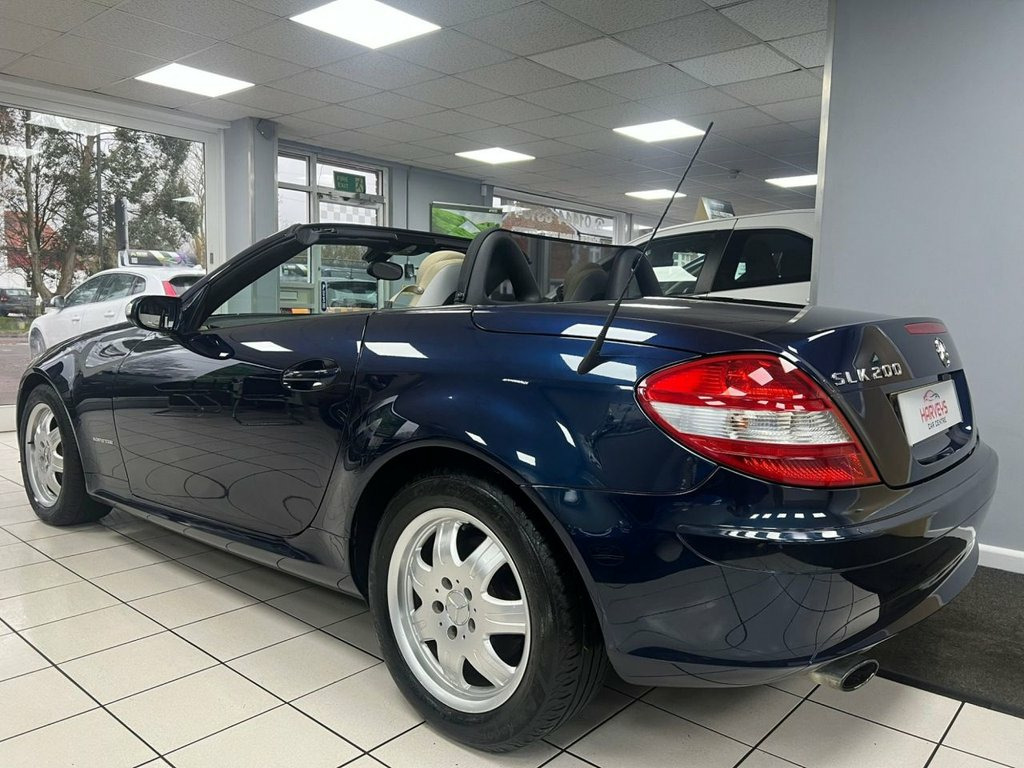 SERVICE HISTORY MOT November 2026. Advises fixed. This sought after petrol model looks amazing in gleaming silver with alloys & full leather sports interior. WARRANTY included etc. Powerful 136mph performance. Rapid acceleration (0-60 in 8.3 seconds) Great handling, comfortable ride, high specification & MERCEDES engineered to close perfection! Offered with the engine of choice this low mileage example stands out from the crowd! A stunning car that is offered in excellent condition! Representing great value. Enjoyable to drive, fast & engineered by Mercedes with no compromise on quality. Combined with its refined Mercedes Benz engineering and the practical benefits of its features, this SLK presents a compelling choice for those seeking both performance and everyday usability. Furthermore, the SLK boasts a surprisingly large boot space, making it practical for everyday use and weekend getaways alike. The low CO2 emissions of this particular model are a notable advantage, indicating a more environmentally conscious choice compared to many vehicles in its class. This, combined with its efficient 1.8L engine and excellent fuel economy, positions the Mercedes Benz SLK200 as a smart and economical option for those seeking style and practicality in a convertible.Offered at fantastic value! A truly stunning example.that comes with a new MOT. . All cars are professionally valeted and will be sanitised before handover. Adjustable Steering Column/Wheel, Air Bag Driver, Air Bag Passenger, Air Bag Side, Airscarf - Neck Level Heating, Alarm, Anti-Lock Brakes, Benitoite Blue, Cockpit Management/ Nav Display inc Radi, Computer, Drivers Seat and Ext Mirrors -Elec/Mem, Electric Windows (Front), Electronic Stability Programme, Floor Mats - Rep Black, Front Fog Lights, Head Air Bags, Heated Seats, Immobiliser, Leather (Orient Beige), Passenger Seat - Elec Adjust/Memory, Spare Wheel (Space Saver), Steering Wheel Mounted Controls, Upholstery Cloth