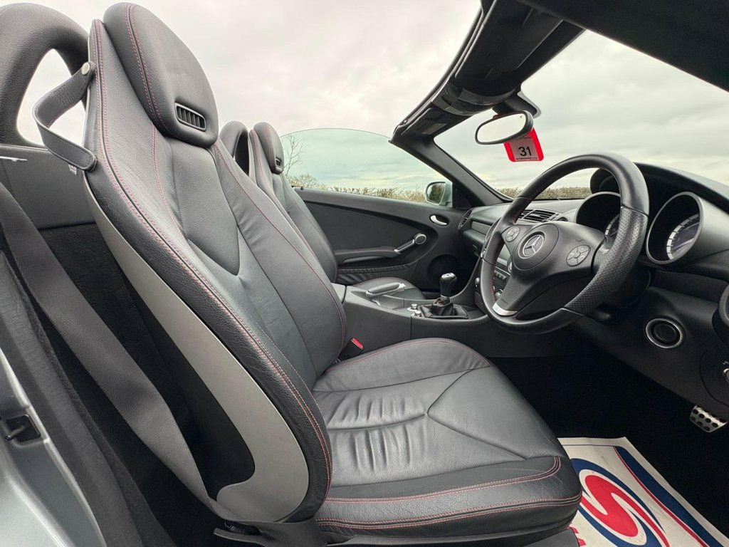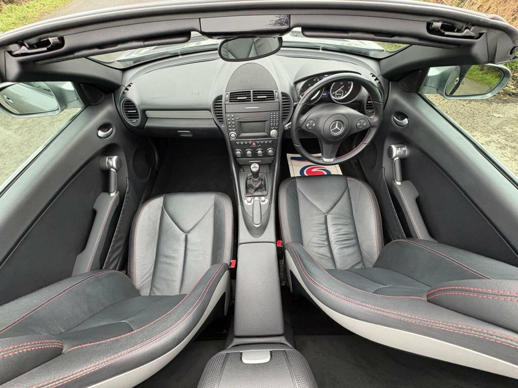 Fabulous condition on this Mercedes SLK 200K Convertible with excellent service history having had 9 services both Mercedes and independent garage. Excellent spec inc full black leather with red stitching/ Air scarf neck level heating/ heated front seats/ auto lights/AMG alloys/ rear spoiler / parctronic front and rear sensors / excellent drive and very well maintained. it has 2 keys and will be supplied with a full MOT serviced and warranty.. Parktronic System, Palladium Silver, Leather- Leather, Paint- Metallic, Heated Front Seats, Airscarf- Neck Level Heating, 17in 5 Twin Spoke Alloy Wheels, 12V Power Outlet- Passenger compartment, 16in 5Spoke Alloy Wheels, 9 Speakers, Auto Climate Control, Bluetooth System, Centre console storage tray, Driver & Front Passenger Seat height, Height & reach adjust Steering colum, Leather Steering Wheel, Mercedes Audio 20 Radio & CD & t, Multifunction Steering Wheel, Power Steering, Storage tray on dashboard, Wind deflector