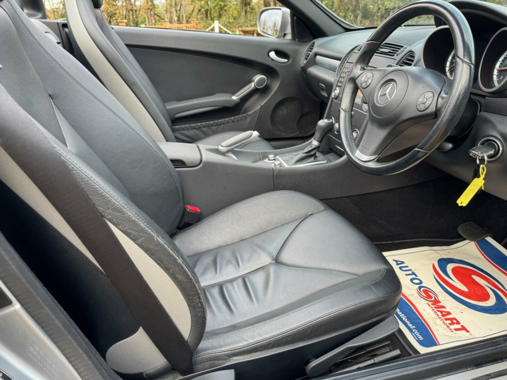 A Locally owned car just taken in part exchange, this 2011 Mercedes Benz SLK200K has just 72,000 miles and offers a superb driving experience with its 1.8 litre petrol engine. Finished in sleek black leather, this convertible is equipped with a Bluetooth system for seamless connectivity and auto climate control to ensure your comfort in all conditions. Loads of service history and a November 2026 mot! This SLK200K stands out as great value with its combination of luxury, performance, and thoughtful features, making it a compelling choice for those seeking a refined and enjoyable drive.. in good, clean condition throughout for its age. Drives very well indeed. v power outlet- passenger compartment, 16in 5spoke alloy wheels, 9 speakers, auto climate control, bluetooth system, centre console storage tray, driver & front passenger seat height adjustment, height & reach adjust steering column, leather steering wheel, mercedes audio 20 radio & cd & telephone keypad, multifunction steering wheel, power steering, storage tray on dashboard, wind deflector, leather- black, leather- leather