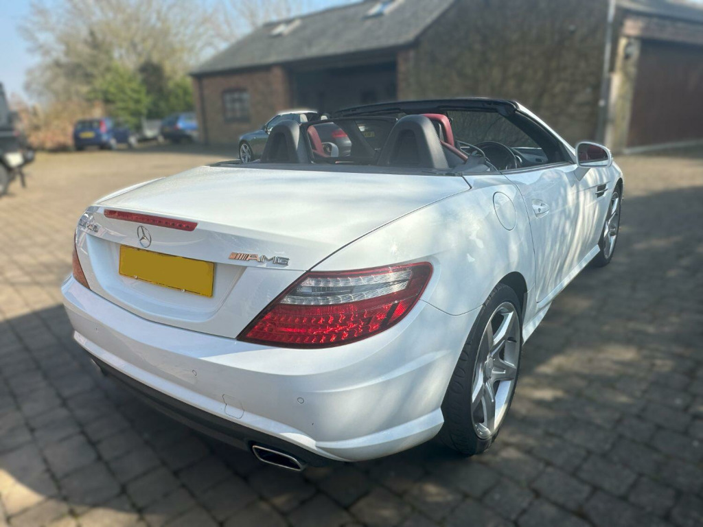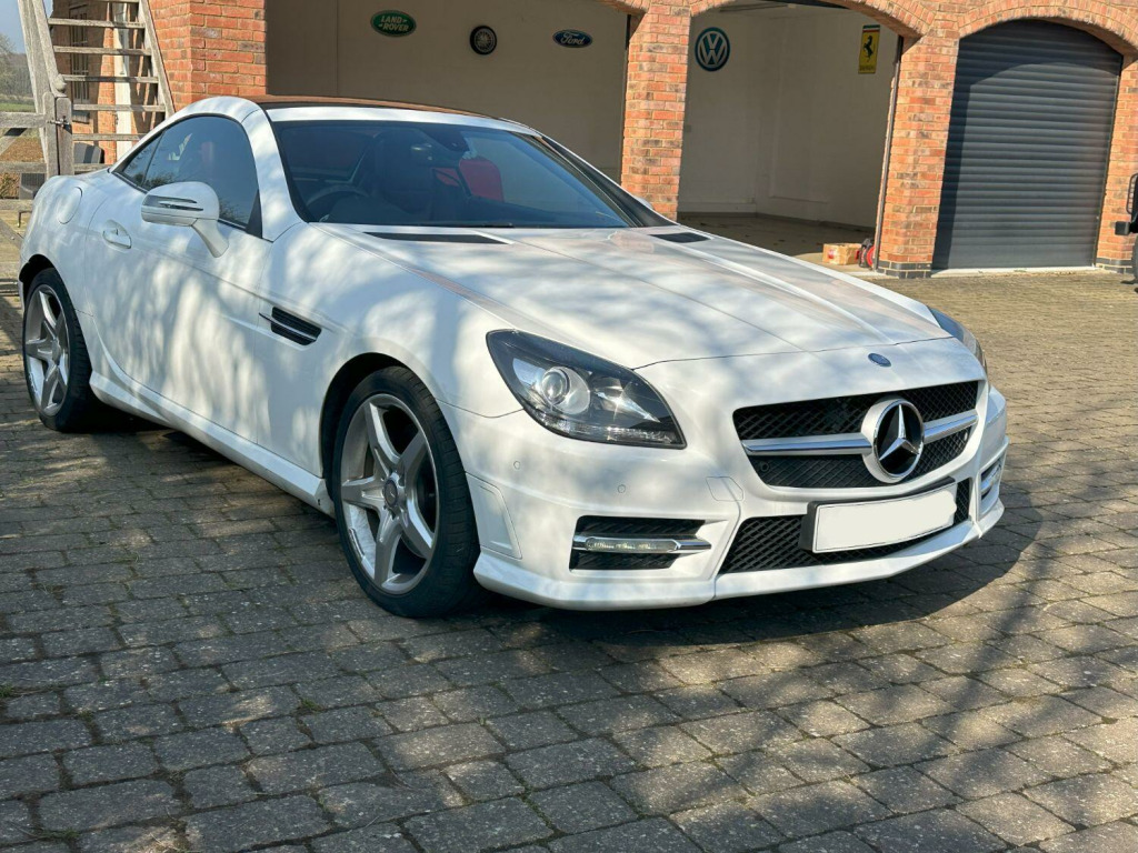 Mercedes SLK 250CDi Blue EFFICIENCY AMG Sport Automatic Roadster 7-speed in White with Contrasting Red Napper Leather with Sat Nav, Parktronic parking guidance, Mirror Package - automatically dimming rear-view mirror, drivers door mirrors and electrically folding exterior mirrors, Automatic air conditioning with one climate control zone, DAB with Bluetooth Hands Free and Media Play, leather multi-function steering wheel with Paddle gear Change, 18 inch alloy wheels, Day time running lights, Immaculate Condition comes with 12 months MOT. Viewing by Appointment Only, PX considered, Finance Available
