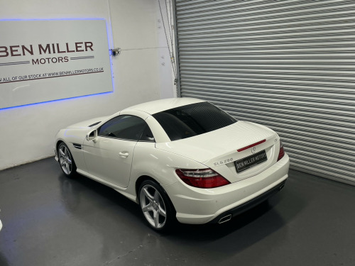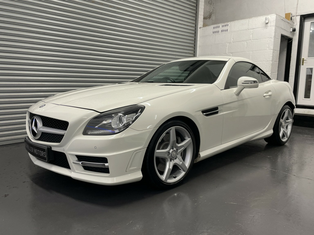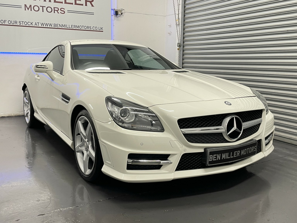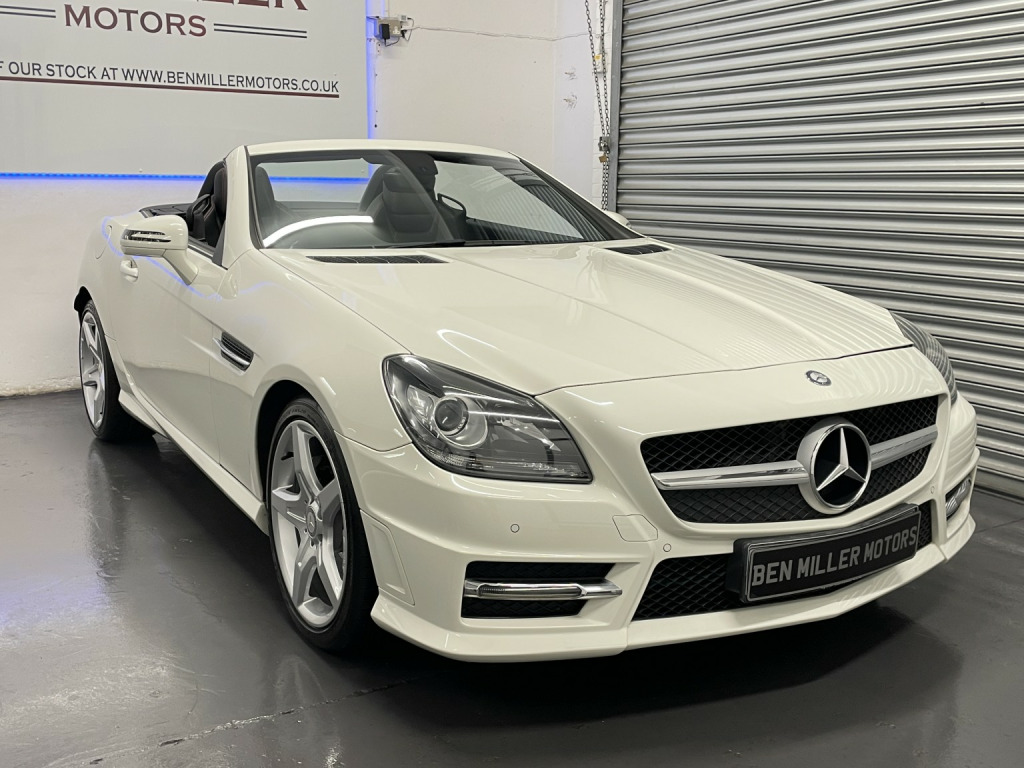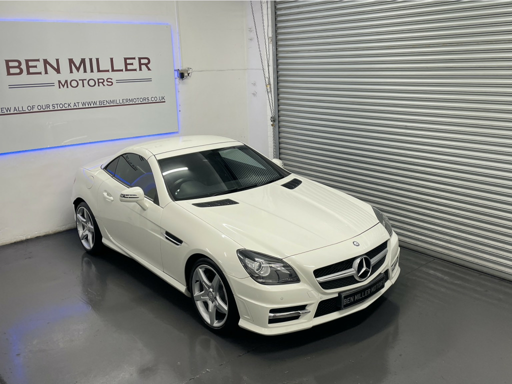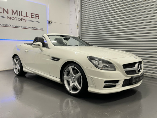 Just arrived in stock at Ben Miller Motors is this 2013 Mercedes-Benz SLK. , An AMG Sport model with just 55,000 miles on the clock. , Immaculate throughout, the exterior is finished in Calcite White with AMG styling pack and 18 AMG alloy wheels. The interior features black leather seats, steering wheel and gearstick gator, all with matching red stitching. , The specification includes a colour head unit with factory fitted navigation, bluetooth, DAB radio and 6 disc CD changer whilst there is also upgraded CarPlay integrated so that you can use your Apple or android devices for apps such as google maps, music, messages and WhatsApp. A reversing camera with rear sensors is also fitted to aid with parking. , Other items of specification include the fully automatic power folding roof, air conditioning, detachable wind deflector, cruise control, daytime running lights, heated door mirrors, multifunction steering wheel, paddle shift. , Offered for sale with original owners manuals, spare key and full Mercedes main dealer service history. , Serviced every year by Mercedes including relevant brake fluid changes and automatic gearbox services, the dates and mileages are as follows:, , 17.01.2014 - 3269 miles, 23.04.2015 - 9931 miles, 18.05.2016 - 13552 miles, 31.05.2017 - 15391 miles, 04.06.2018 - 22071 miles, 05.06.2019 - 28393 miles, 11.06.2020 - 34821 miles, 02.06.2021 - 39951 miles, 11.05.2022 - 43684 miles, 03.05.2023 - 47779 miles, 15.04.2024 - 50917 miles, 11.04.2025 - 53836 miles, , A fresh oil service will also be carried out prior to sale. , All of our cars come with a 12 month MOT and 3 months warranty. , Our facilities include part exchanges, finance and a relaxed indoor showroom for hassle-free viewings. , If you would like to arrange a viewing or would like a friendly chat about a particular vehicle please do not hesitate to call.