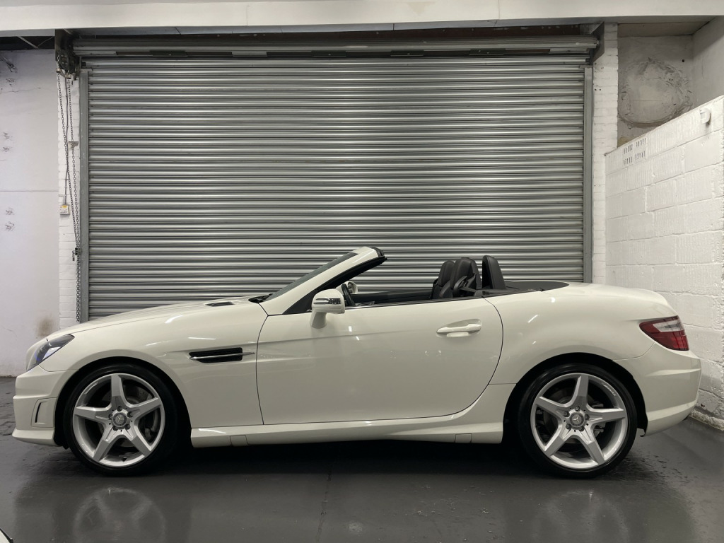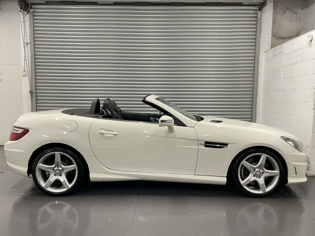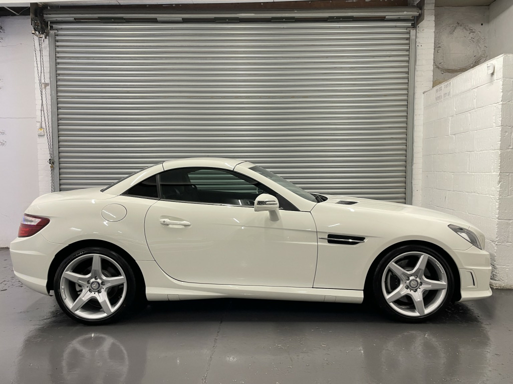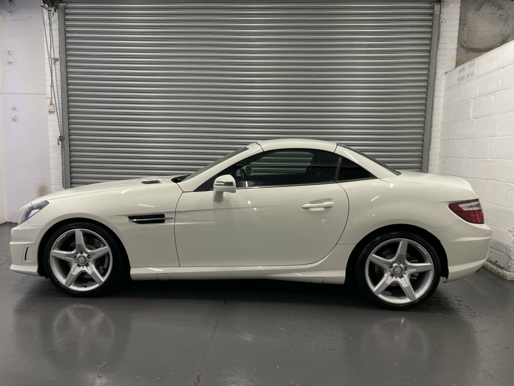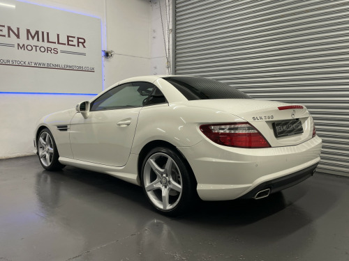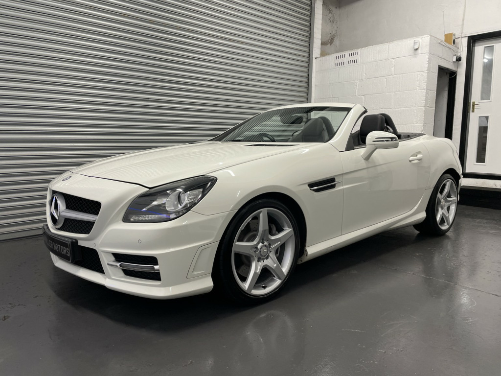 Just arrived in stock at Ben Miller Motors is this 2013 Mercedes-Benz SLK. , An AMG Sport model with just 55,000 miles on the clock. , Immaculate throughout, the exterior is finished in Calcite White with AMG styling pack and 18 AMG alloy wheels. The interior features black leather seats, steering wheel and gearstick gator, all with matching red stitching. , The specification includes a colour head unit with factory fitted navigation, bluetooth, DAB radio and 6 disc CD changer whilst there is also upgraded CarPlay integrated so that you can use your Apple or android devices for apps such as google maps, music, messages and WhatsApp. A reversing camera with rear sensors is also fitted to aid with parking. , Other items of specification include the fully automatic power folding roof, air conditioning, detachable wind deflector, cruise control, daytime running lights, heated door mirrors, multifunction steering wheel, paddle shift. , Offered for sale with original owners manuals, spare key and full Mercedes main dealer service history. , Serviced every year by Mercedes including relevant brake fluid changes and automatic gearbox services, the dates and mileages are as follows:, , 17.01.2014 - 3269 miles, 23.04.2015 - 9931 miles, 18.05.2016 - 13552 miles, 31.05.2017 - 15391 miles, 04.06.2018 - 22071 miles, 05.06.2019 - 28393 miles, 11.06.2020 - 34821 miles, 02.06.2021 - 39951 miles, 11.05.2022 - 43684 miles, 03.05.2023 - 47779 miles, 15.04.2024 - 50917 miles, 11.04.2025 - 53836 miles, , A fresh oil service will also be carried out prior to sale. , All of our cars come with a 12 month MOT and 3 months warranty. , Our facilities include part exchanges, finance and a relaxed indoor showroom for hassle-free viewings. , If you would like to arrange a viewing or would like a friendly chat about a particular vehicle please do not hesitate to call.