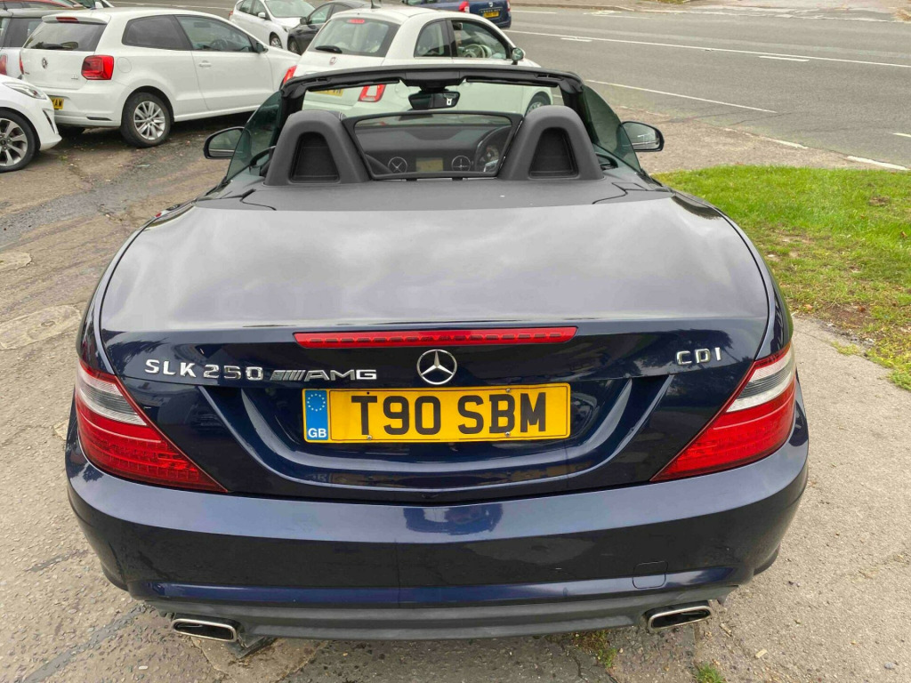 The car has got: AIR CON, AUTOMATIC LIGHTS, BLUETOOTH, CRUISE CONTROL, DAB, FULL LEATHER TRIM, PRIVACY GLASS, RADIO CD, SAT NAV, sunroof.This 2012 Mercedes Benz SLK250 CDI AMG Sport boasts an exceptionally low mileage of just 52,100 miles, a remarkable figure for its age, and benefits from a full service history with its last service completed on 26 August 2025 at 51,185 miles. This vehicle is presented with an MOT valid until September 2026 and a clear vehicle history check, offering peace of mind. The AMG Sport trim enhances its appeal, featuring a powerful 2.1L diesel engine. Notable features include Headlamp Assist for automatic headlight activation, a Bluetooth interface for hands-free telephone calls, and air conditioning to ensure a comfortable driving experience.The SLK250 CDI AMG Sport delivers an impressive performance, accelerating from 0 to 62mph in a swift 6.7 seconds, demonstrating its dynamic capabilities. This acceleration figure is a key indicator of its superior performance compared to many other vehicles in its class. Combined with its comprehensive provenance and desirable AMG Sport specification, this Mercedes Benz SLK represents a compelling choice for those seeking a blend of performance, comfort, and style. in alloy wheels - amg 5 spoke design, abs - anti-lock braking system, asr - acceleration skid control, attention assist, aux-in socket and usb interface in the centre armrest, adaptive brake system with hold function-hill start assist, air conditioning, airbag - front passenger, airbags - driver, airbags - head and sidebags - driver and front passenger, airbags - sidebags for driver and front passenger, alarm system with immobiliser and interior protection, audio 20 radio-cd, automatic child seat recognition sensor, bas - brake assist, bluetooth interface for hands-free telephone, central controller dial to operate audio and telephone functions, cruise control, dab digital radio tuner, door mirrors - electrically adjustable and heated with led indicators, esp - electronic stability programme, electric windows - front, electro-hydraulic vario-roof, first aid kit, headlamp assist - automatic headlamp activation, perforated front brake discs and brake calipers with mercedes-benz lettering, power assisted steering, pre-safe anticipatory safety system, pre-wiring for becker map pilot navigation system, remote boot release, remote central locking, roll over protection, seats - height adjusters, seats - sports, spare wheel - space saver, sports suspension, steering column - manually adjustable for height and reach, steering wheel - gear shift paddles, steering wheel - sports-3-spoke-multifunction-trimmed nappa leather-flat bottom, tinted glass - green, trim - brushed aluminium, tyre pressure loss warning system, warning triangle, wind deflector - fabric