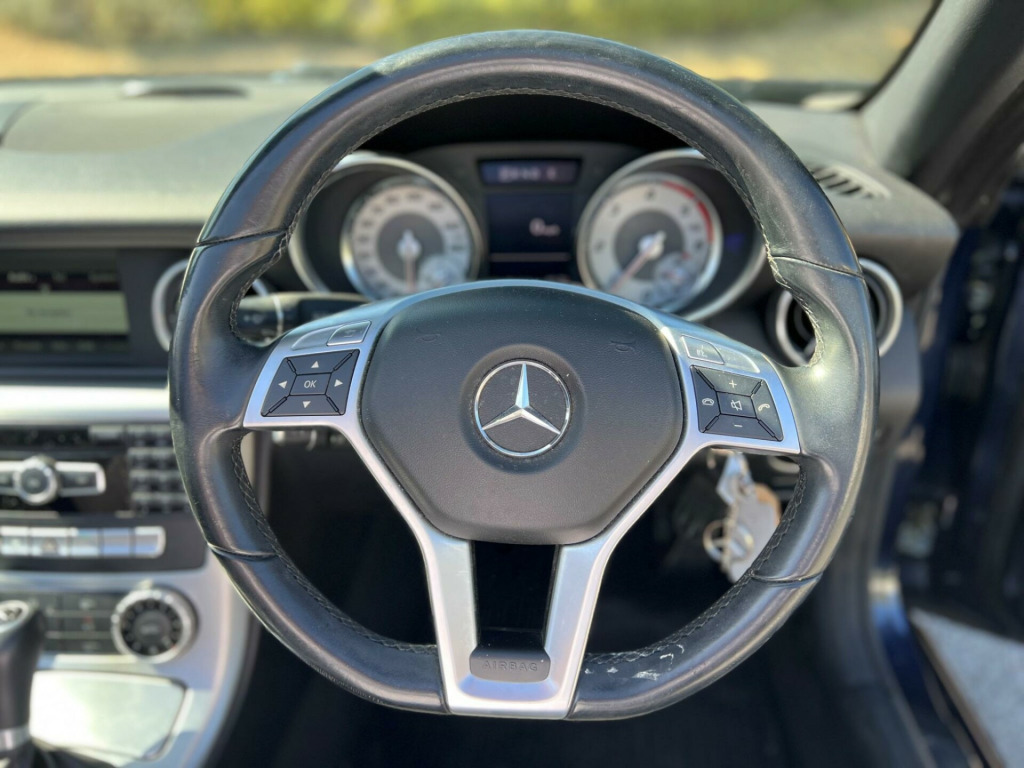 2014 Mercedes-Benz SLK250 Bluefficiency 2.1 CDI finished in blue. Only 46,000 warranted miles on the clock. Comes with a 12 month warranty! MOT til 9th July 2026. 2 former keepers from new. Car drives well with no mechanical faults. Full V5 available. Comes with a top spec including; alloy wheels, leather steering wheel, multi-functional steering wheel, cruise control, on-board computer, Radio DAB/FM, electric windows, central locking, AC/Climate control, Bluetooth, USB input, automatic headlights, convertible roof, TPMS, cup holders and many more. Nationwide Delivery Available. P/X Welcome. HPI Clear. Any questions don't hesitate to contact us on 07443456706 in alloy wheels - 5 spoke design, 5.8in colour display, abs - anti-lock braking system, asr - acceleration skid control, attention assist, active bonnet - pedestrian safety measure, adaptive brake lamps, adaptive brake system with full hold function, air conditioning, airbags - dual stage - driver, airbags - dual stage - front passenger, airbags - front sidebags, airbags - head and sidebags - driver and front passenger, airbags - head for driver and front passenger, alarm system with immobiliser and interior protection, audio 20 radio system, audio 20 radio with 6-disc cd changer, automatic child seat recognition sensor, bas - brake assist, bluetooth interface for hands-free telephone, brake pad wear indicator, central controller dial to operate audio and telephone functions, centre armrest - front, cruise control, dab digital radio tuner, daytime running lights - led, door mirrors - electrically adjustable and heated, door sill panels - mercedes-benz lettering, esp - electronic stability programme, electric parking brake, electric windows - front, electro-hydraulic vario-roof, exhaust system - two chrome tailpipes, first aid kit, head restraints - front seats - neck-pro active, headlamp assist - automatic headlamp activation, high level third brake light - led, immobiliser, instrument cluster with multi-function display and silver-coloured dials, led tail lights, locking wheel bolts, outside temperature gauge, power assisted steering, pre-safe anticipatory safety system, pre-wiring for becker map pilot navigation system, remote boot release, remote central locking, roll over protection, roof lining - black, seat belt pre-tensioners - front, seats - height adjusters, seats - sports, service indicator assyst, spare wheel - space saver, speakers x8, sports pedals - stainless steel with rubber studs, steering column - manually adjustable for height and reach, steering wheel - multi-function, steering wheel - sports-3-spoke-multifunction-trimmed nappa leather-flat bottom, telephone keypad, tinted glass - green, trim - brushed aluminium, tyre pressure loss warning system, usb and aux-in ports in centre console, warning triangle, wind deflector - fabric