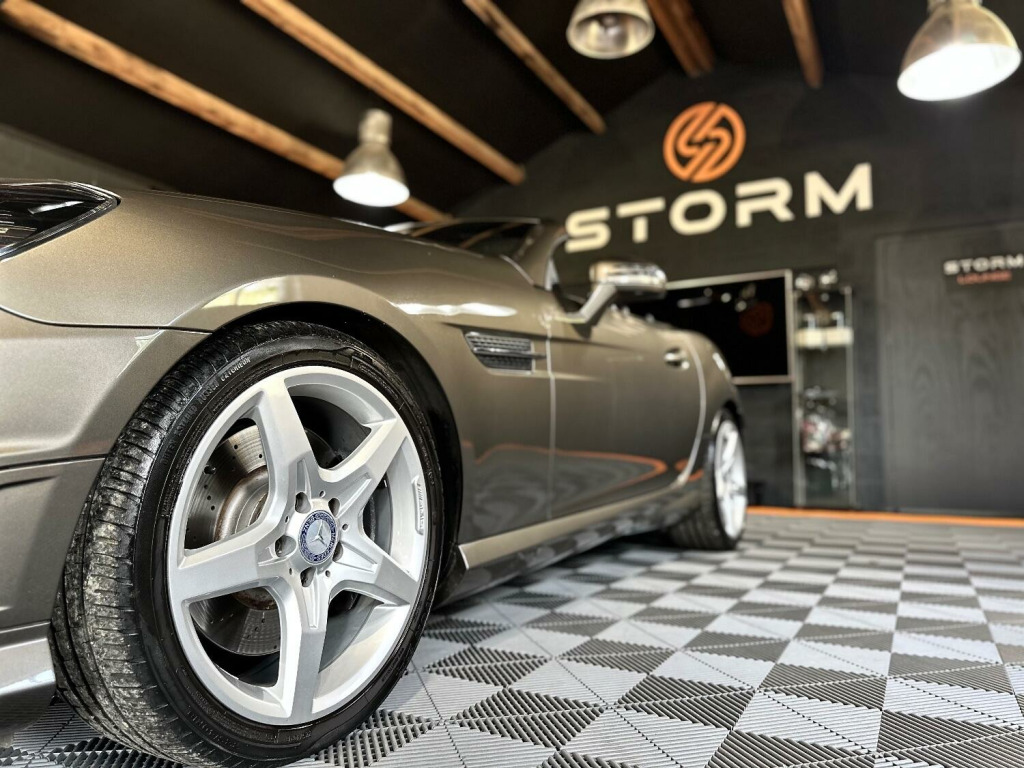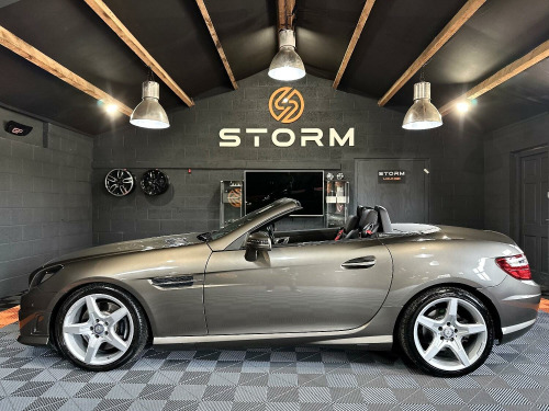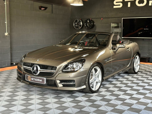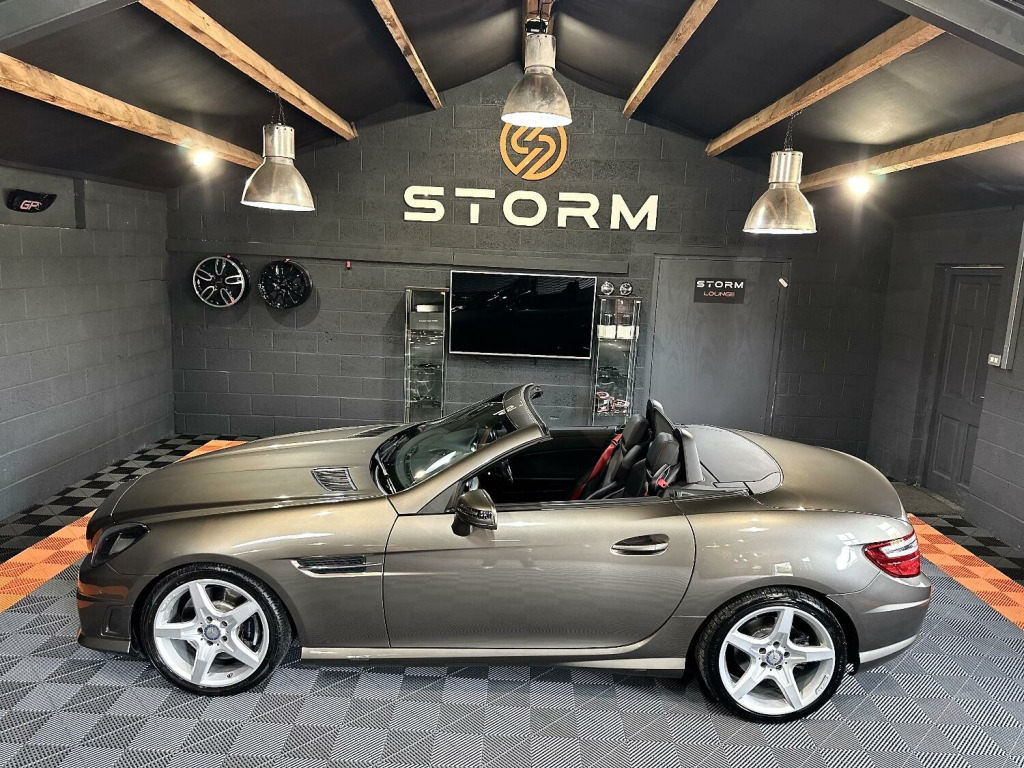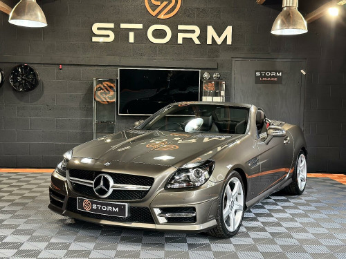 What a fantastic looking SLK we have here at Storm, in near as New condition, this Mercedes really does catch the eye. Looking absolutely stunning in Idium Grey Metallic with its contrasting Black leather and unmarked AMG alloys, this AMG also has the service history and provenance to match. At Storm we pride ourselves on our preparation and invite you to view or indeed ask for a personal walk around video. Why not visit our website strom-uk.com and view our interactive 360 image. Supplied with a great service history and with a full MOT, this one really isnt to be The vehicle specification displayed may not be the exact vehicle, please contact us or view vehicle to confirm the precise specification.